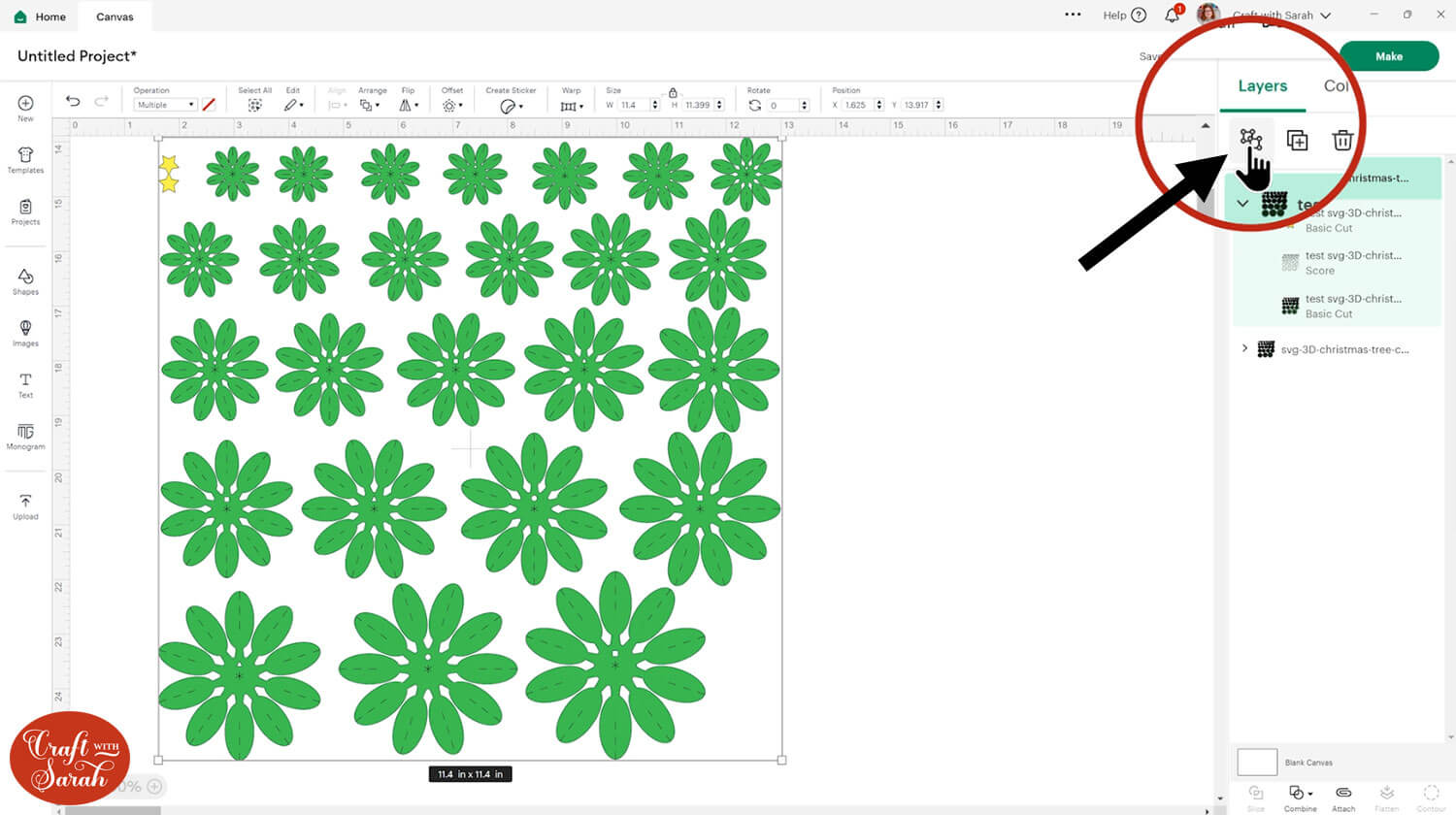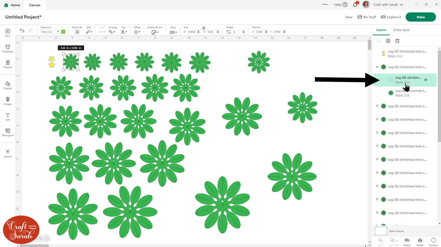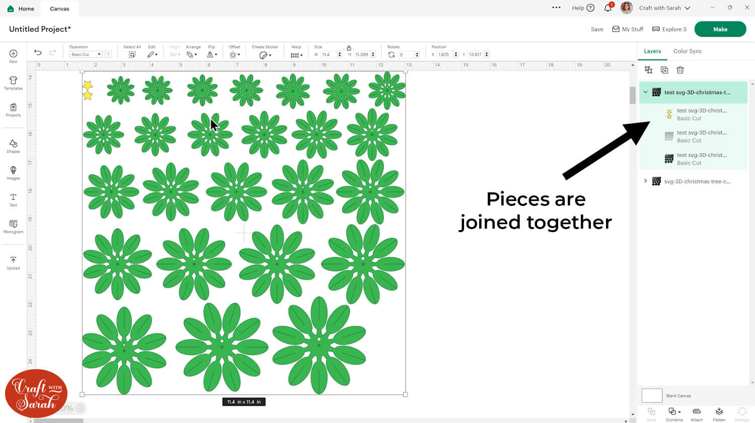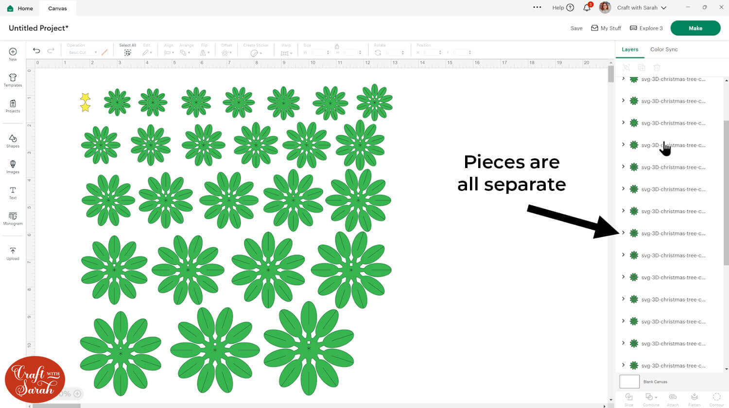 If that’s the case, you would need to use the other file which has all the pieces separate. This is the file called svg-3D-christmas-tree-separate-craftwithsarah.svg.