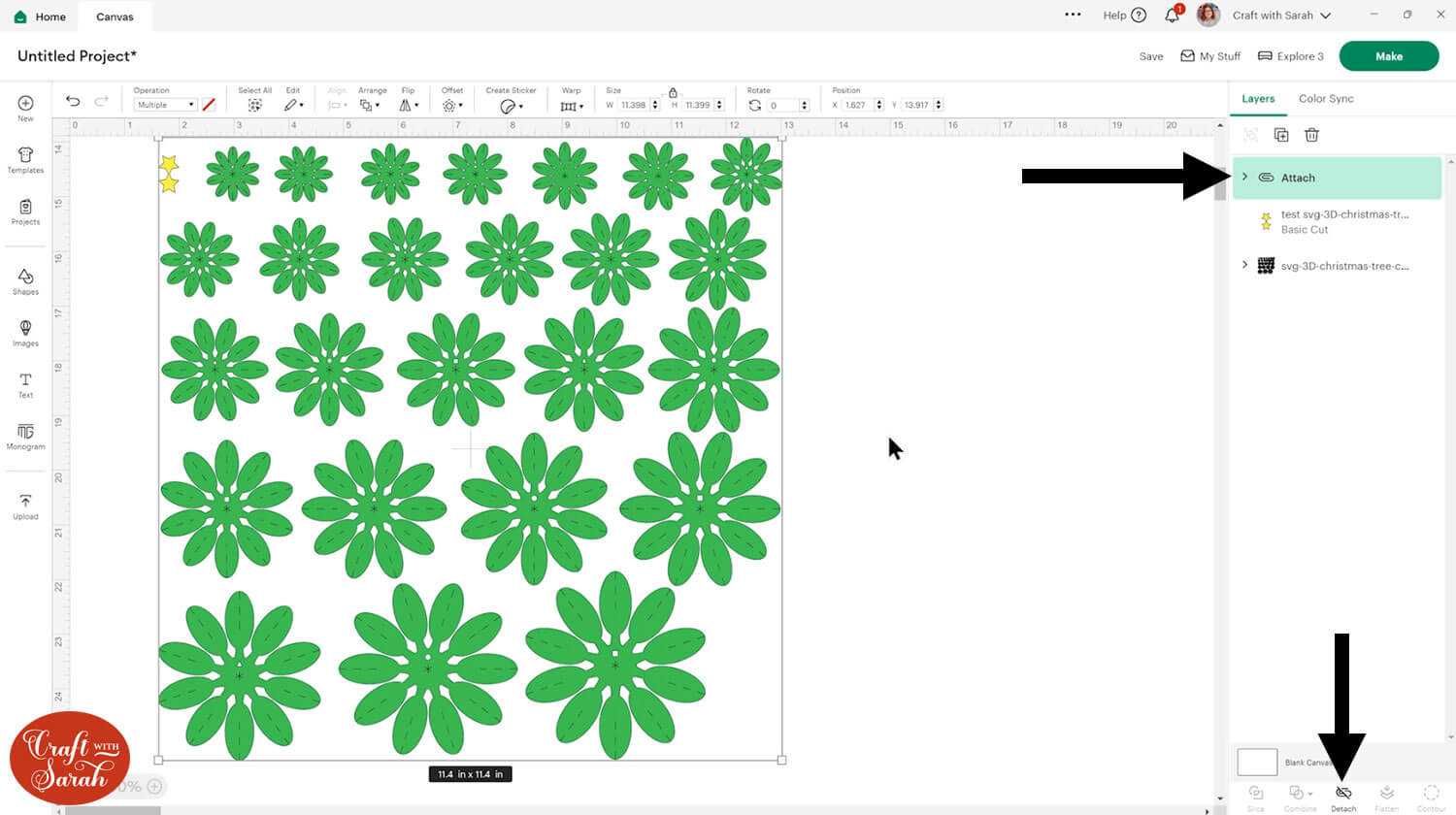 If you’re using one of the larger Cricut machines like the Explore Air 2 or 3, the Maker or the Maker 3 and you have 12×12 in cardstock then the easiest one for you to use is the one that is called svg-3D-christmas-tree-joined-together-craftwithsarah.svg.