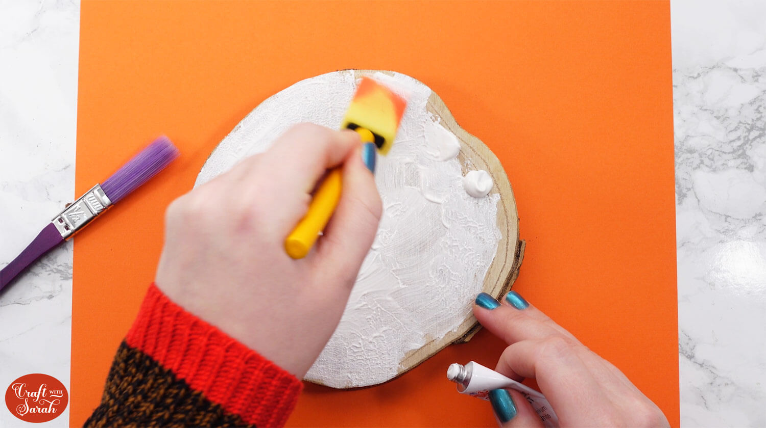 To do this, I painted the top white with acrylic paint and a sponge. It needed two coats as the first one soaked into the wood a little bit when it was dry.