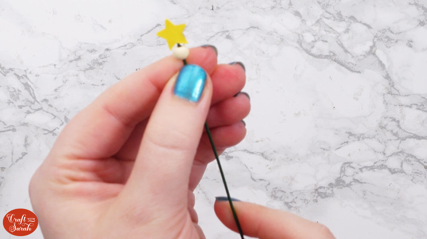 Take a bead and thread it onto your wire. If you prefer, you can start with a piece of tree rather than a bead underneath the star.
