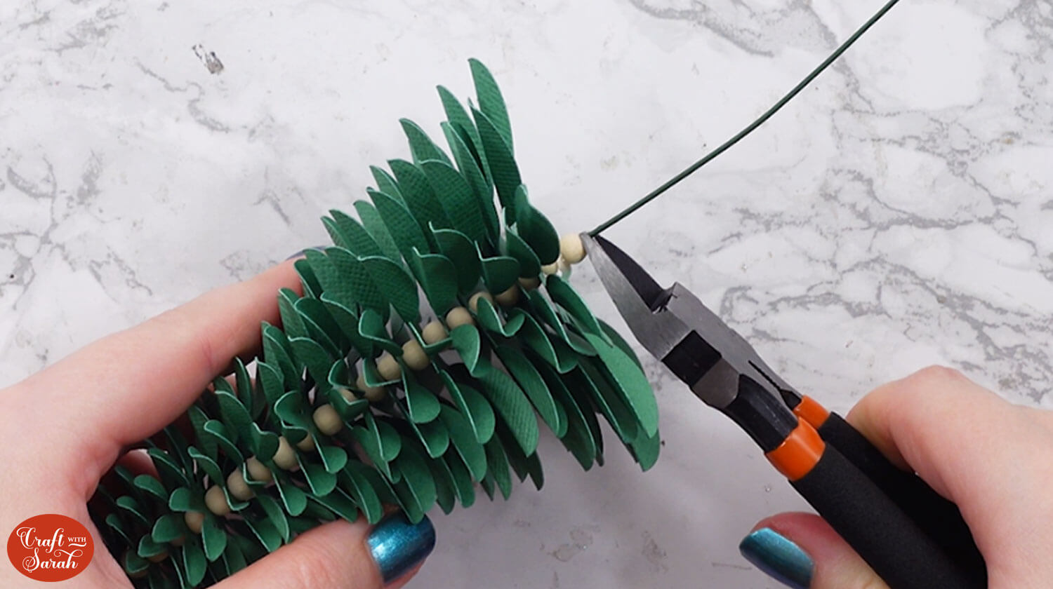 Once you have got to the largest piece of your tree on the wire, finish it off with one final bead.