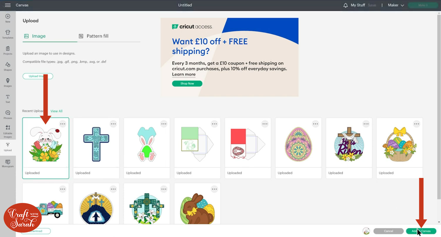 After uploading, the design will show in your “Recently Uploaded Images”.
