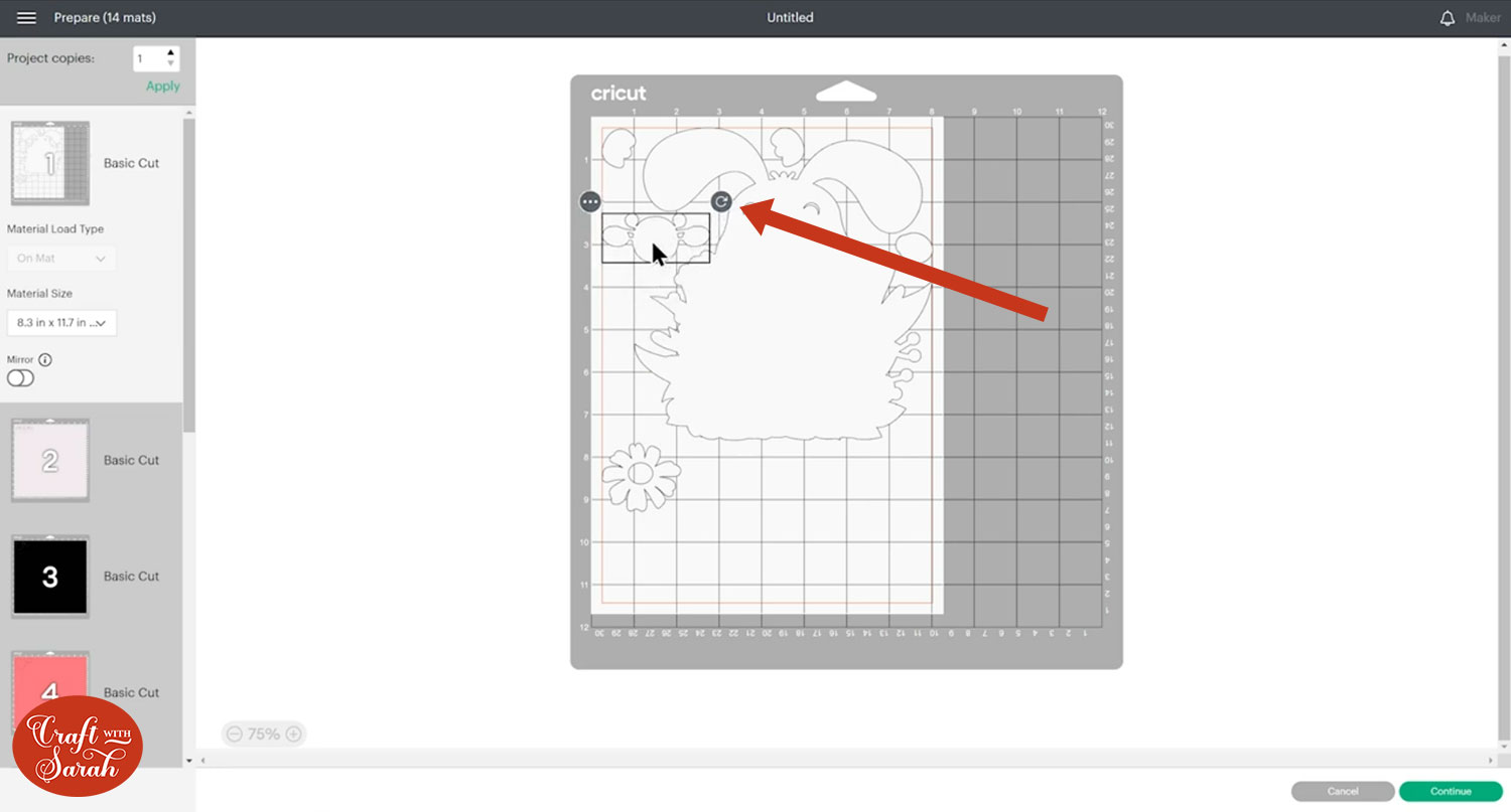 To save space on your cardstock, you can move things around by clicking and dragging. Make sure when you’re moving things about that nothing overlaps because otherwise, it won’t cut out properly