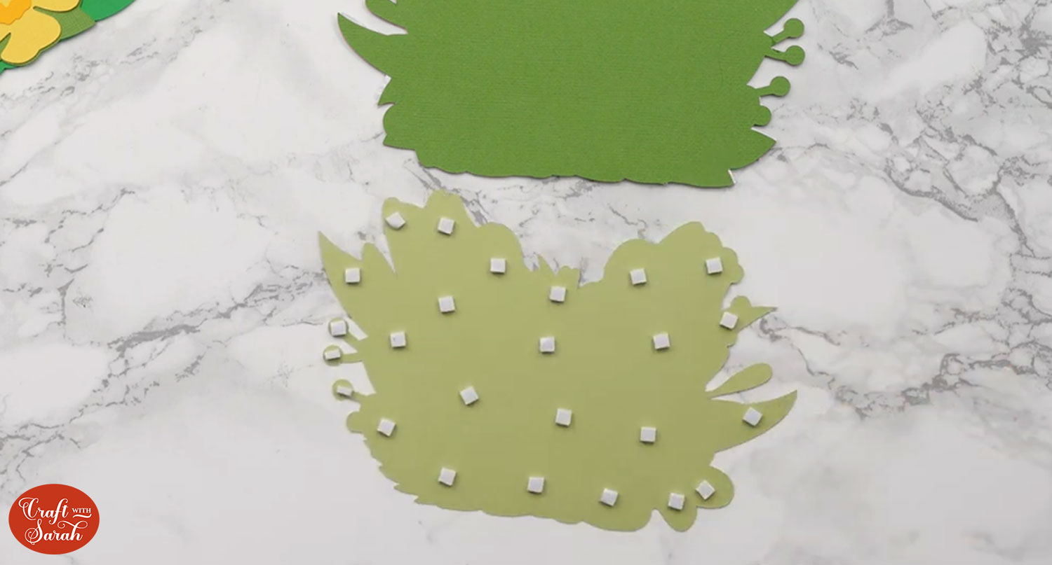 When adding the foam pads to the relevant layers, make sure you add some in the middle of the pieces of card so it give stability to the middles. If you don’t add any foam pads in the middles then it can “sag” under the weight of the other layers which doesn’t look as good.