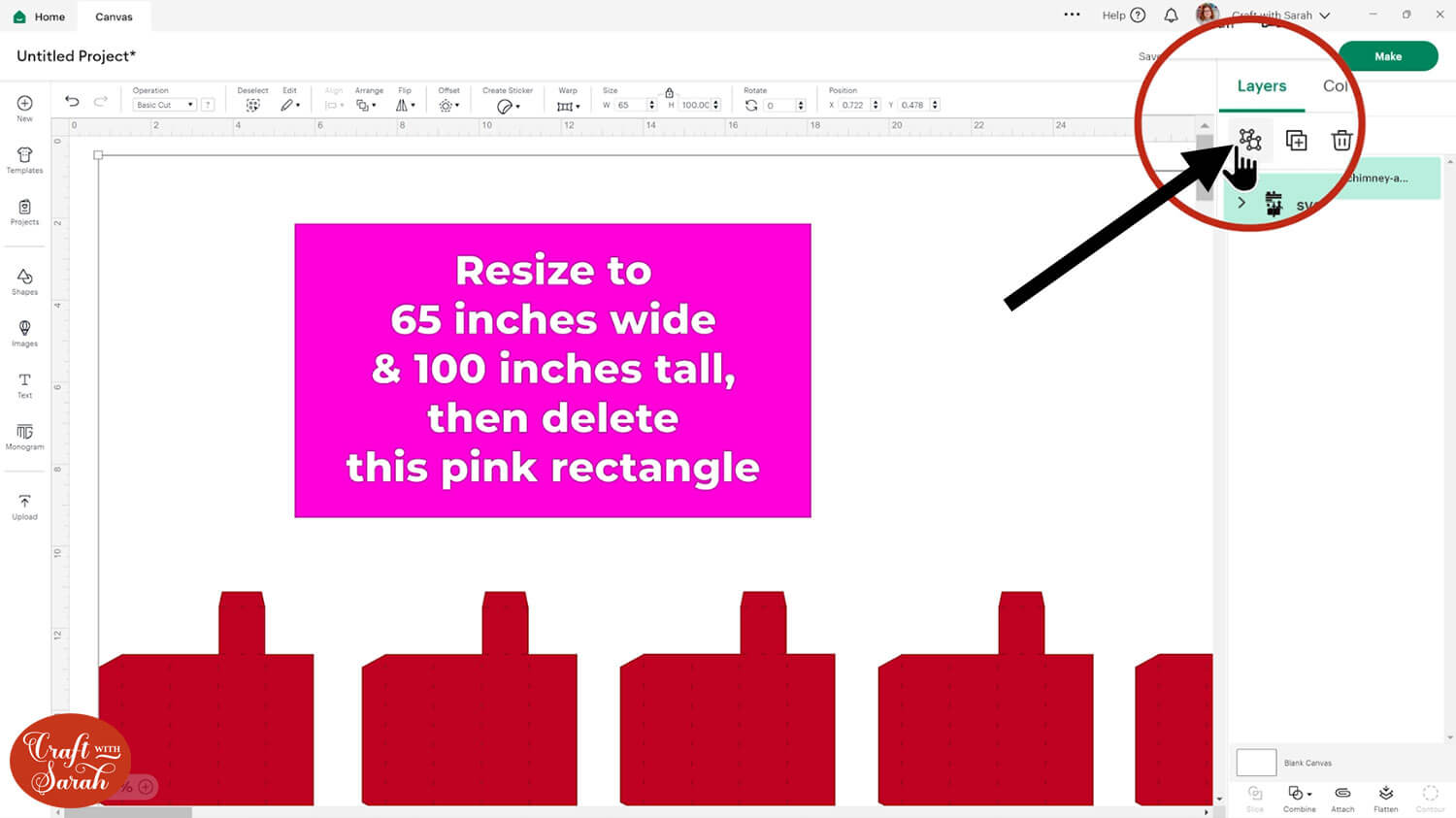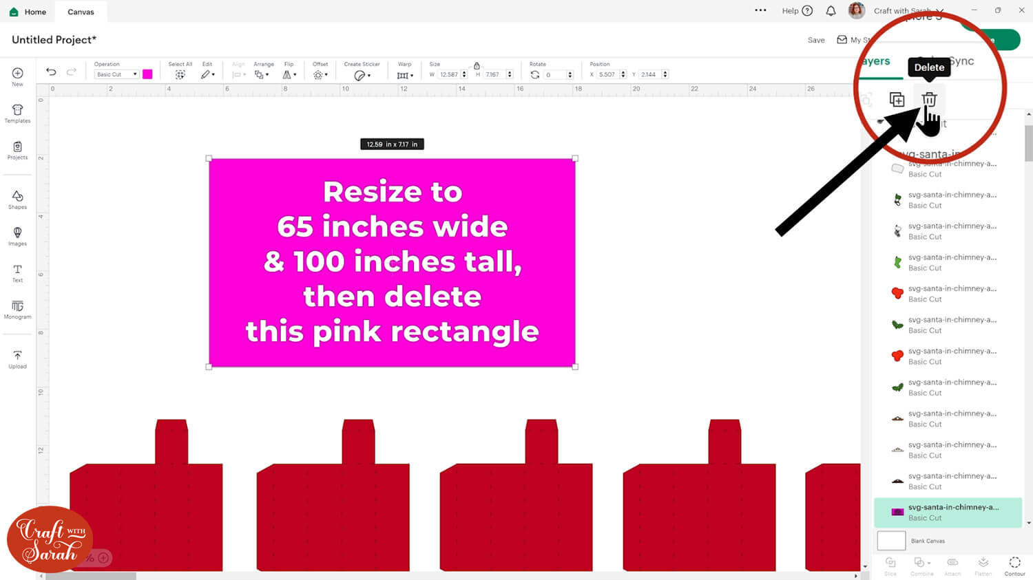 Click the pink rectangle layer and then click the trash can icon (or press the delete key on your keyboard) to remove it.
