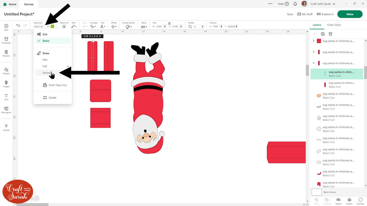 Design Space doesn’t automatically understand that we want to score some of the layers instead of cutting them, so we need to tell it what to do.