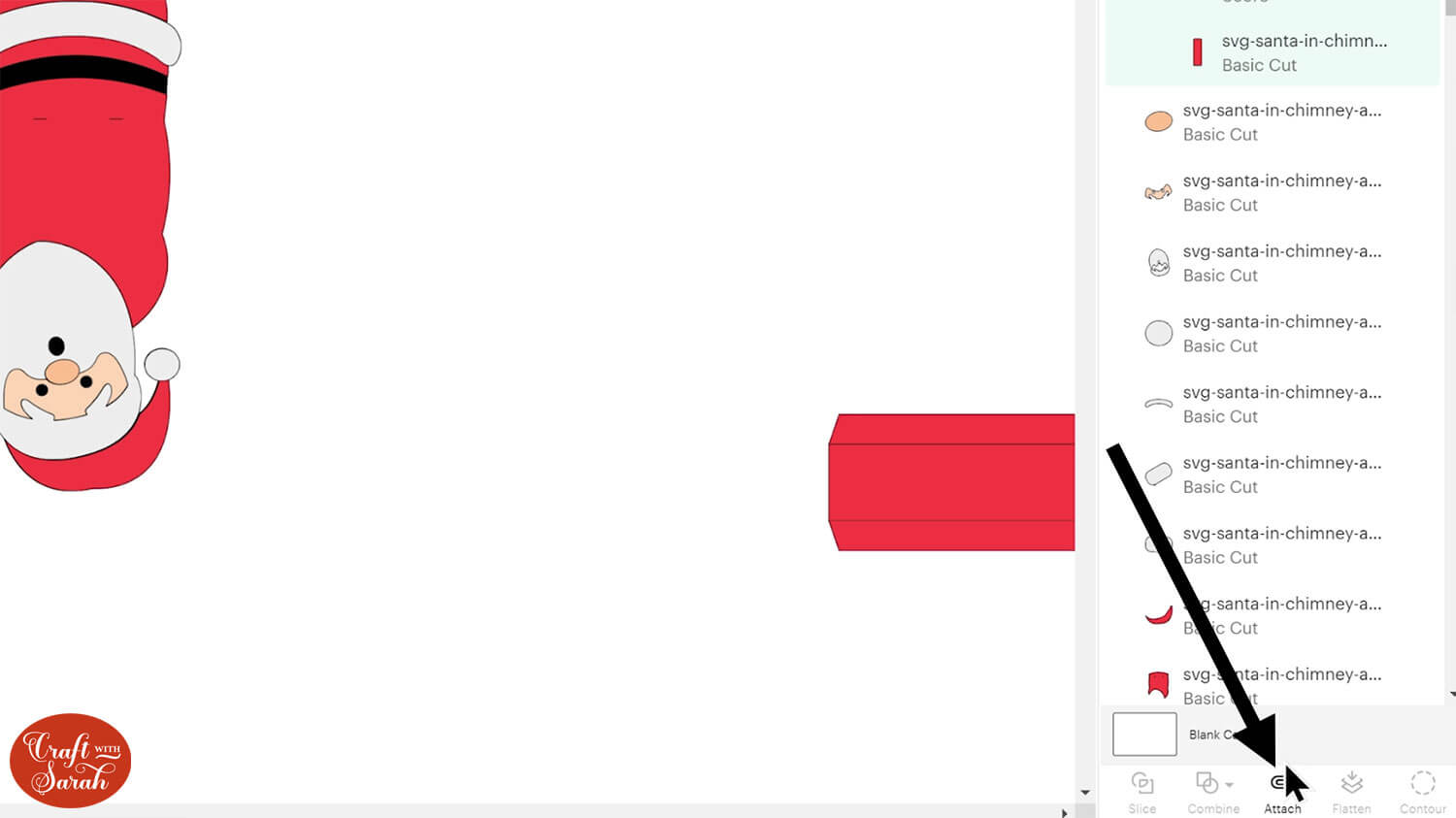 Click to select the group (of 2 layers) and press “Attach”. Attach is what tells the Cricut where to do the scoring.
