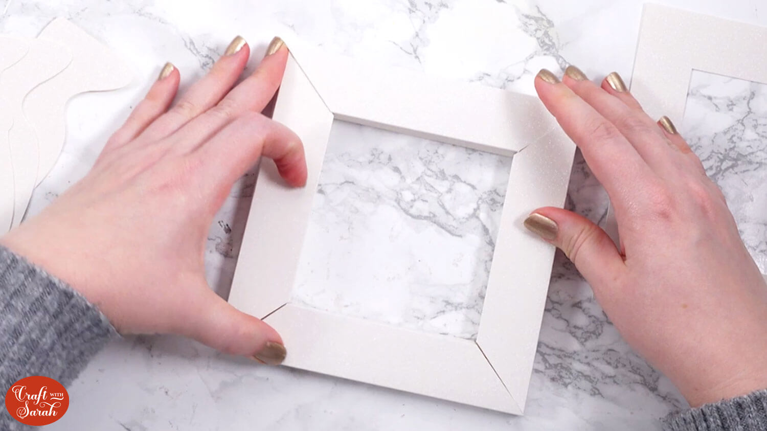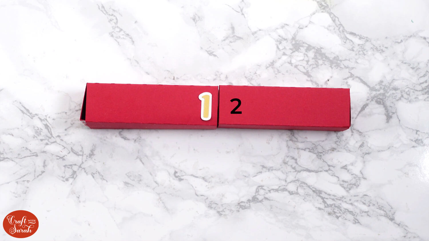 Glue the white and gold layers of the number to the front of the box.
