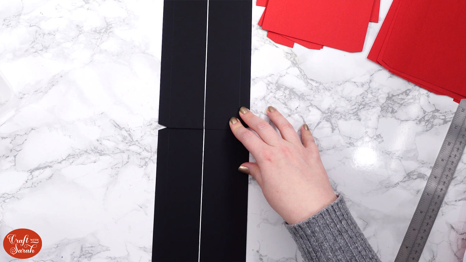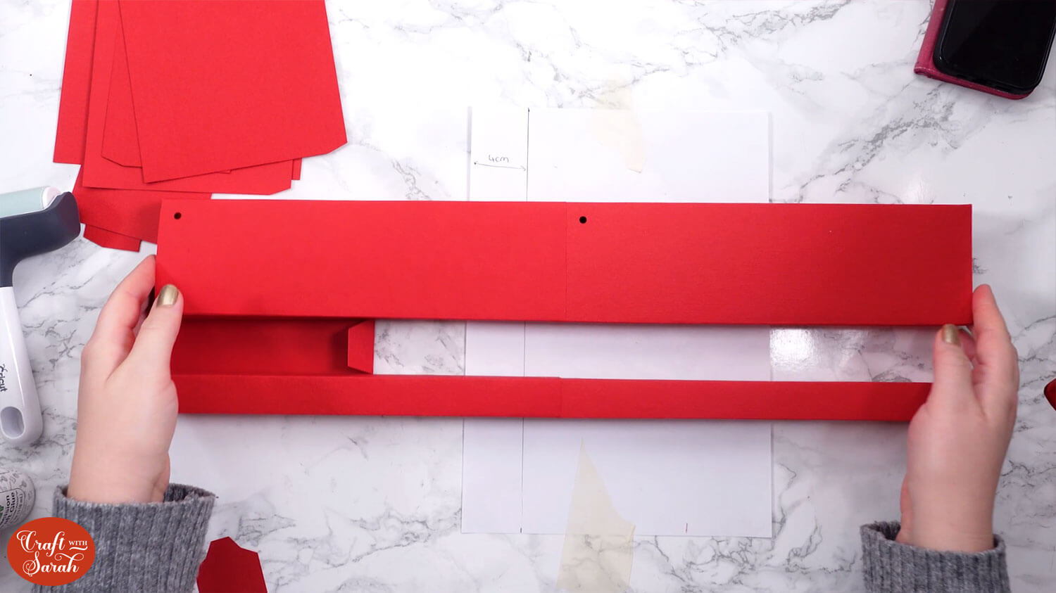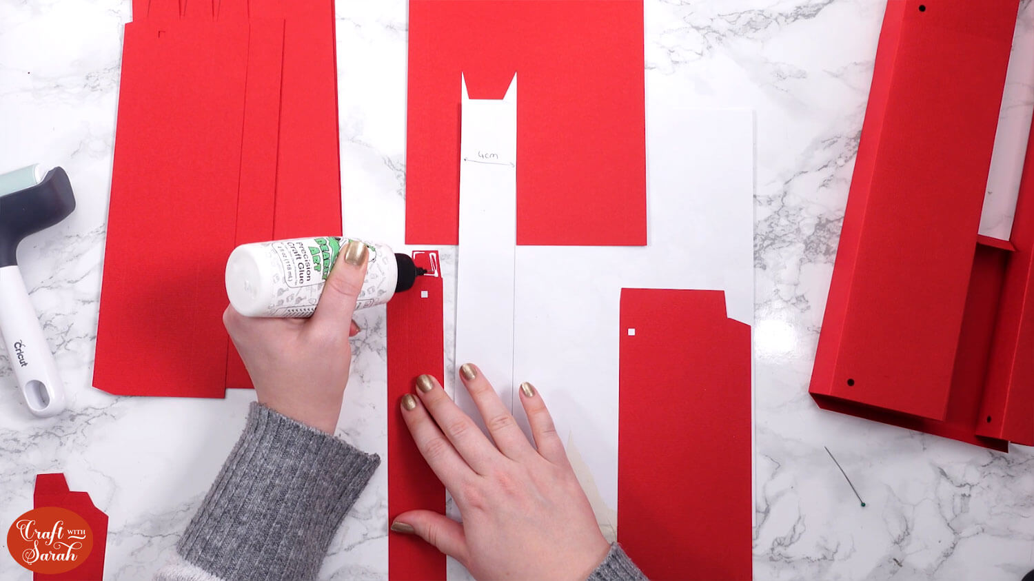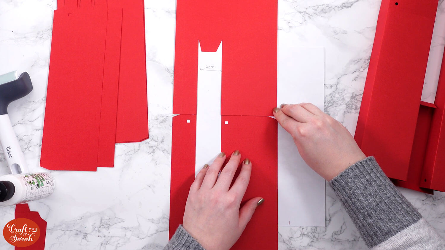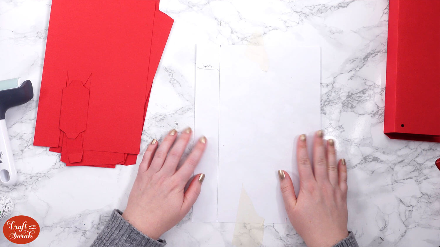 Draw yourself a guide on a piece of paper that shows a 4cm line. It’s essential that the pieces of the structure are exactly 4cm apart. This guide line will ensure that we stick it correctly.