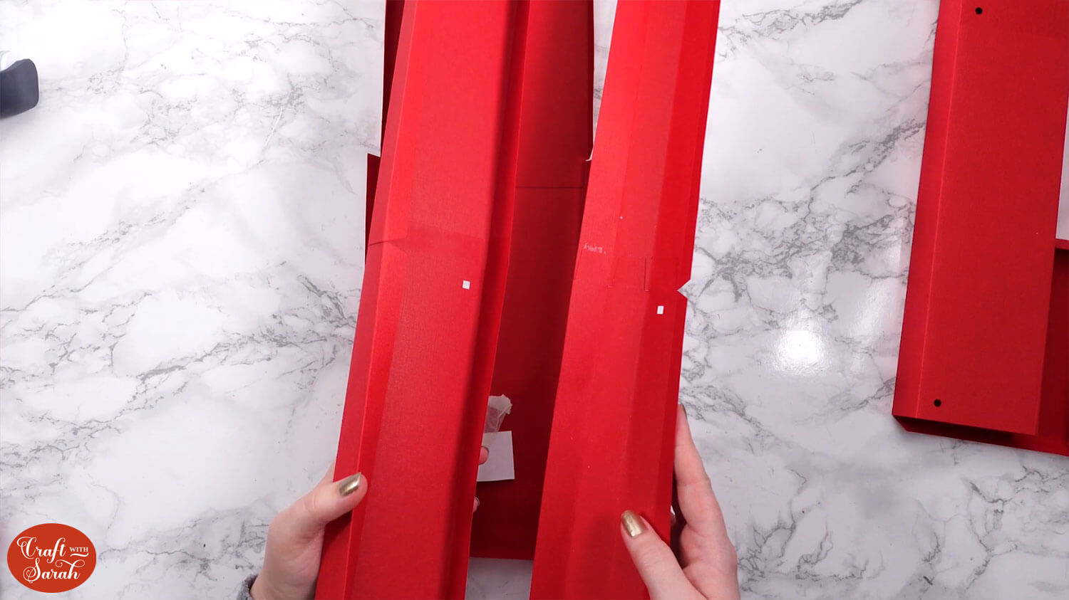 Turn the other two pieces upside down and fold inwards along their score lines tool.