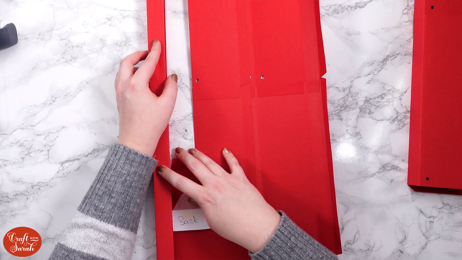 With the back facing upwards, fold inwards along all the score lines.