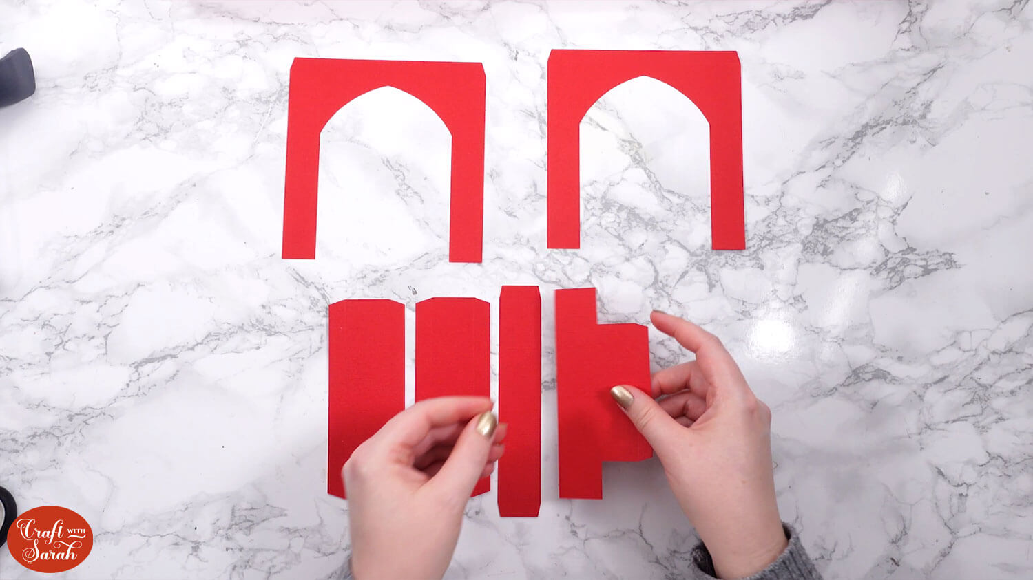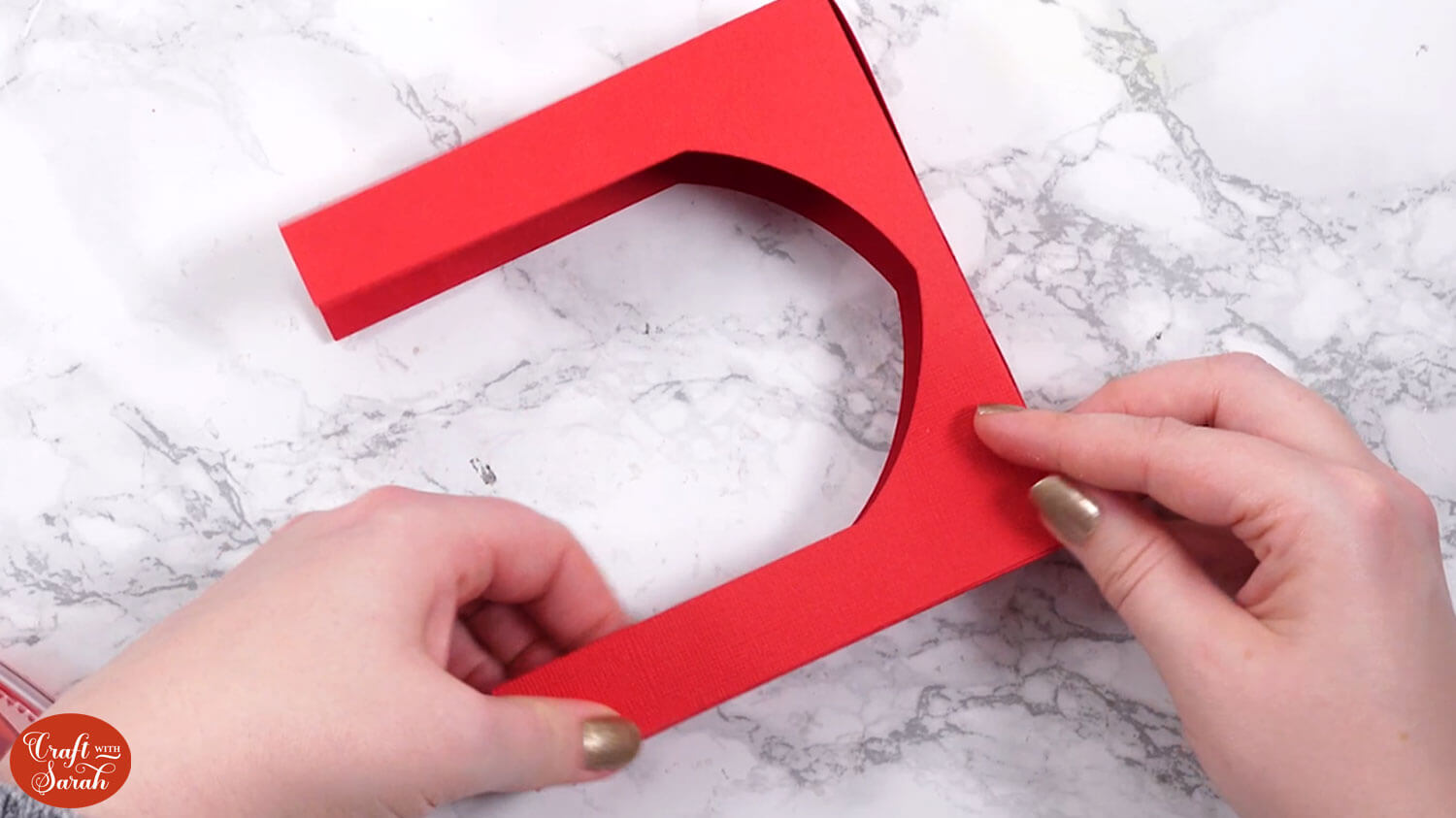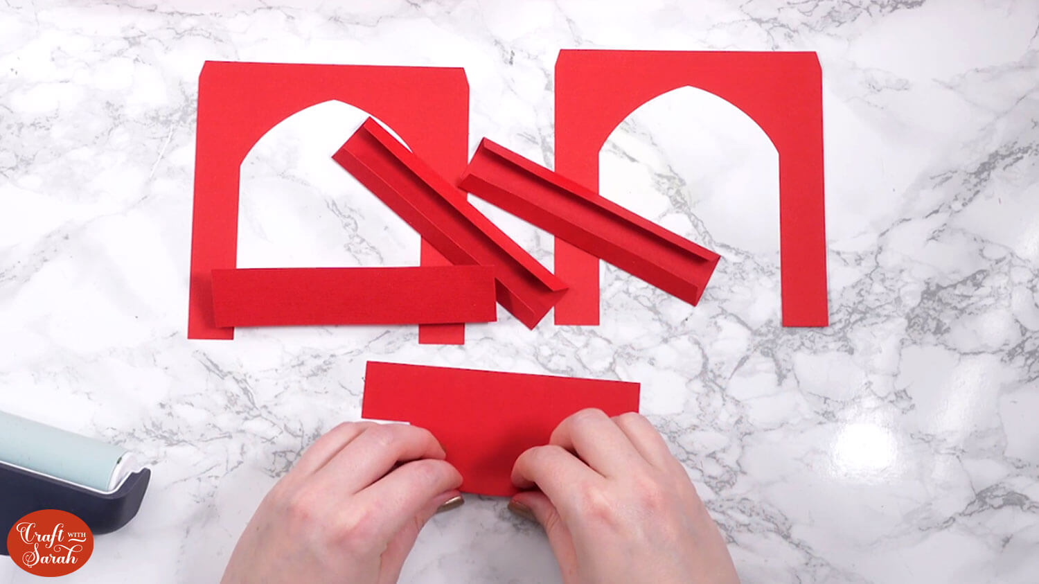 Take the two matching rounded-rectangle pieces and fold along the score lines.