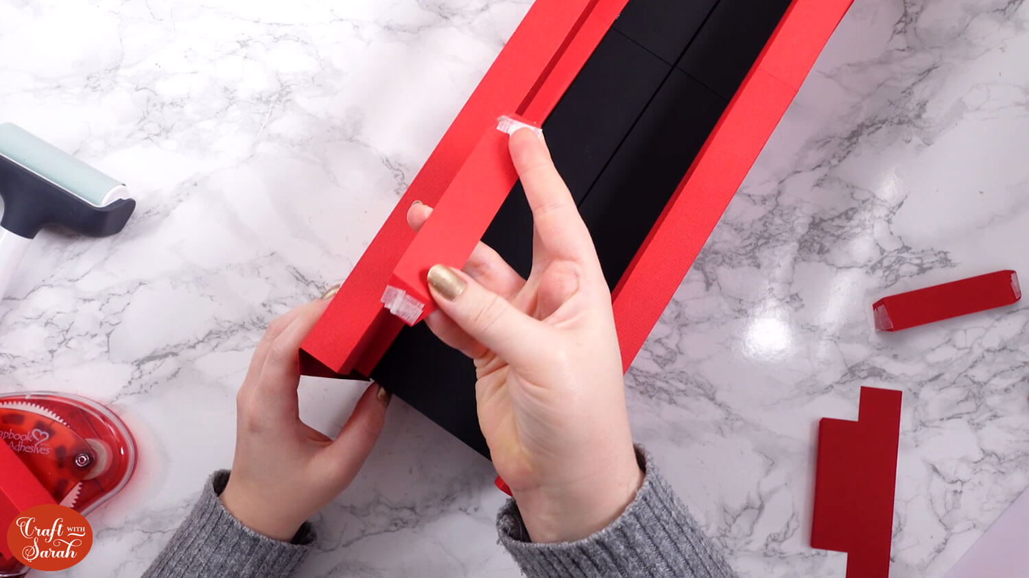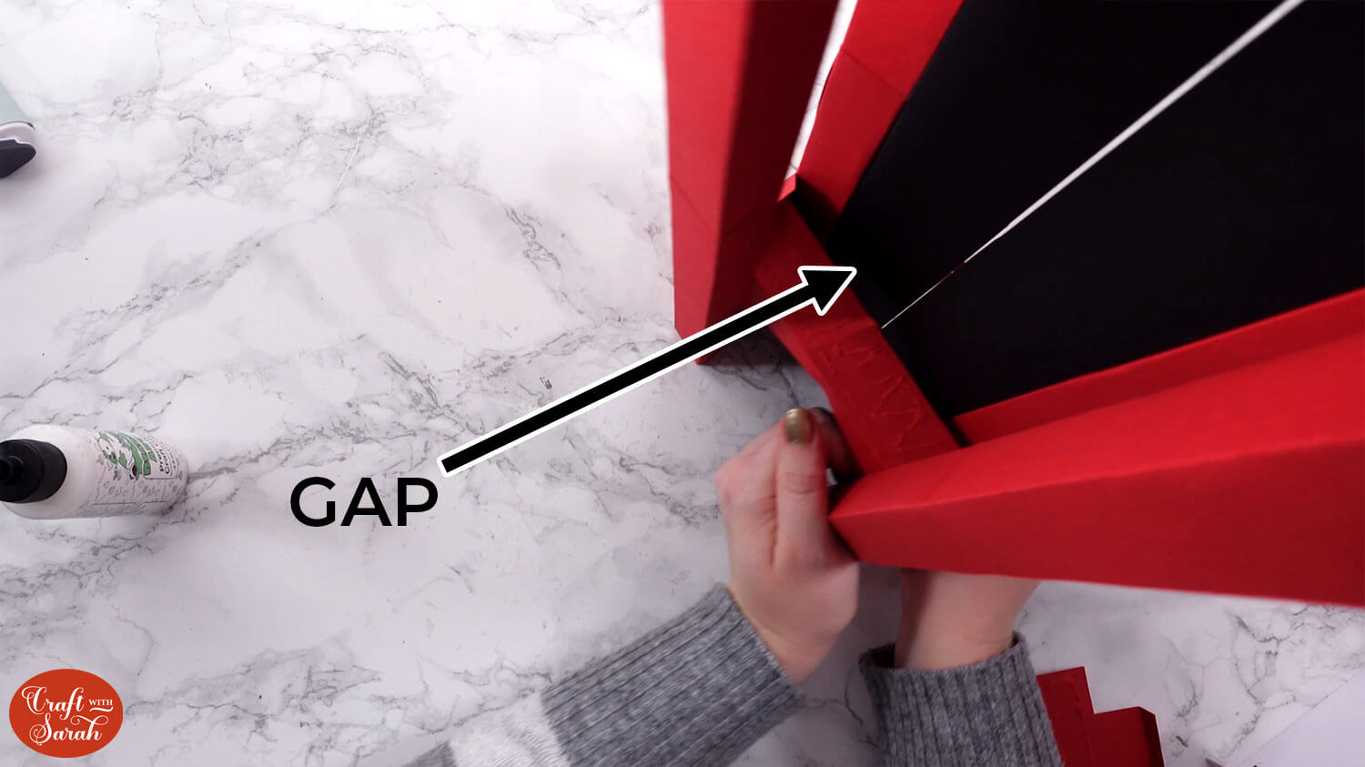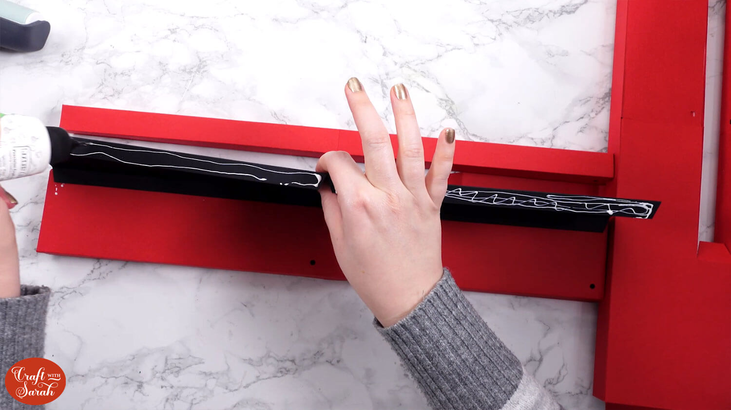 Glue the second black piece on top of the tabs. It’s important to get it stuck the correct way, as if the tabs are in front then they will cause Santa to “jam” as he is sliding down the chimney.