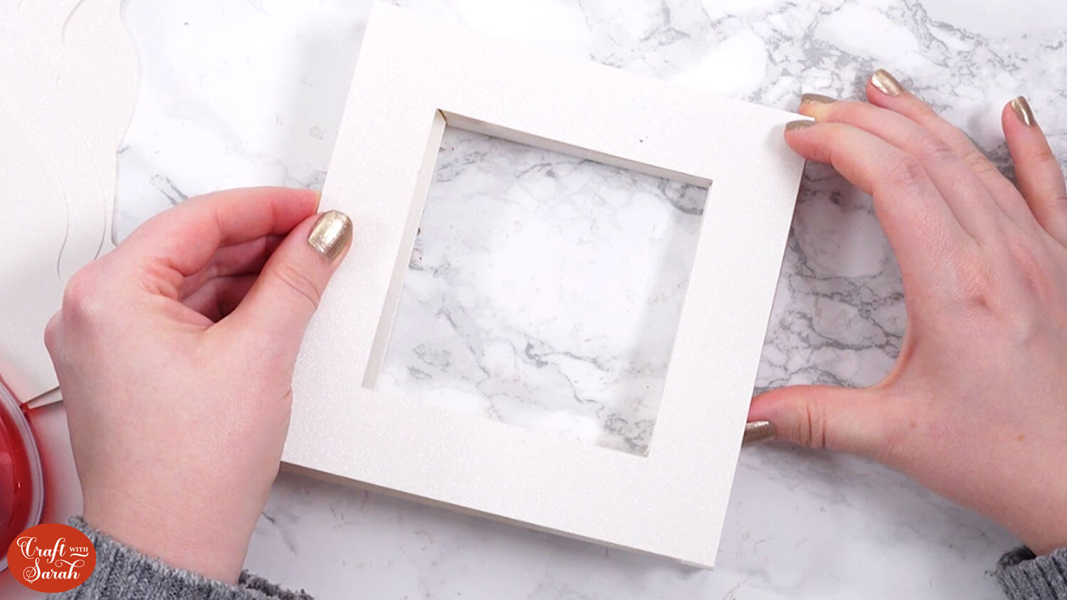 Glue the square “window” shape to the top.