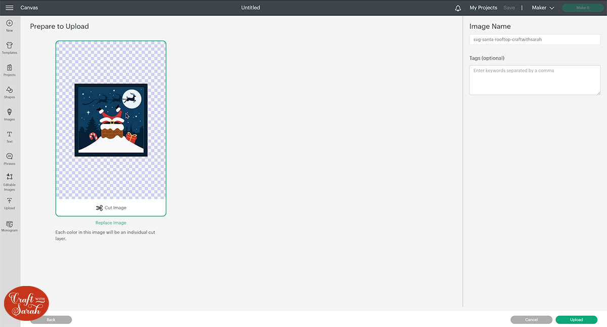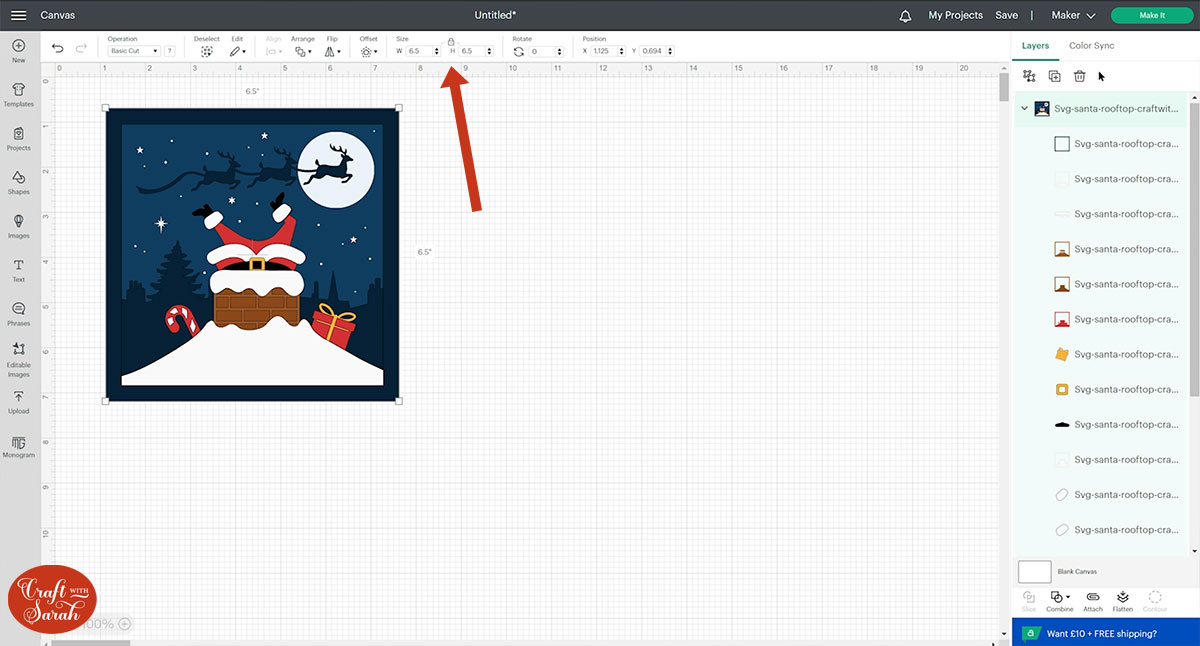 Go into the “Cut Files” subfolder and then select the file called svg-santa-rooftop-craftwithsarah.svg