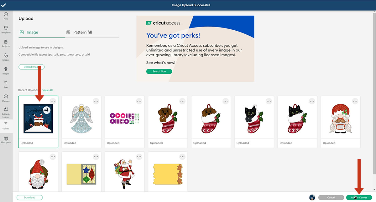 After uploading, the design will show in your “Recently Uploaded Images”.