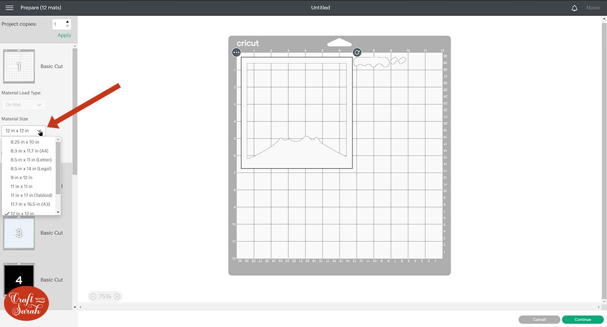 Click the design on your canvas and use the width/height boxes near the top of the screen to make it the size that you want to cut it.