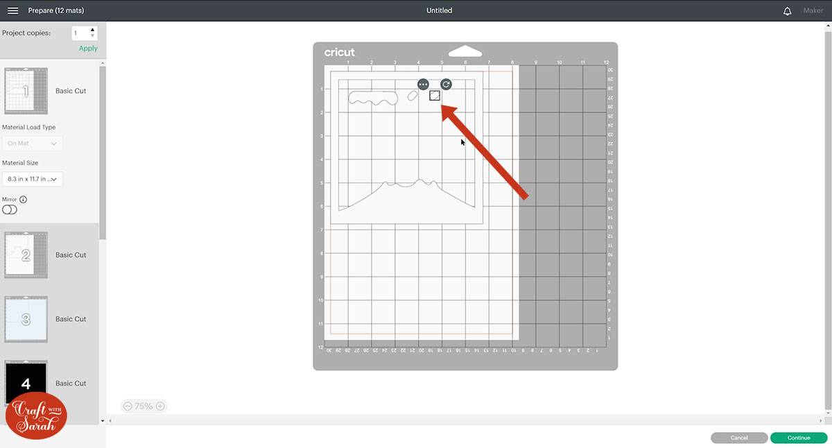 To save space on your cardstock, you can move things around by clicking and dragging. Make sure when you’re moving things about that nothing overlaps because otherwise, it won’t cut out properly.