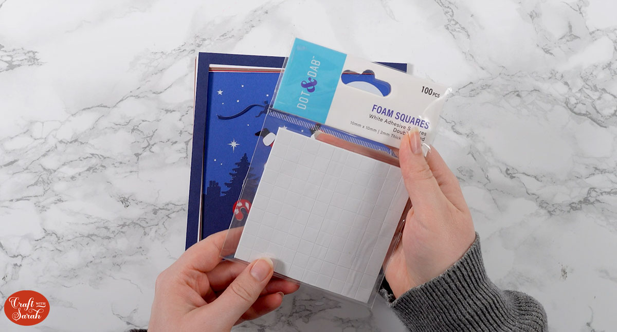 When adding the foam pads to the relevant layers, make sure you add some in the middle of the pieces of card so it give stability to the middles. If you don’t add any foam pads in the middles then it can “sag” under the weight of the other layers which doesn’t look as good.
