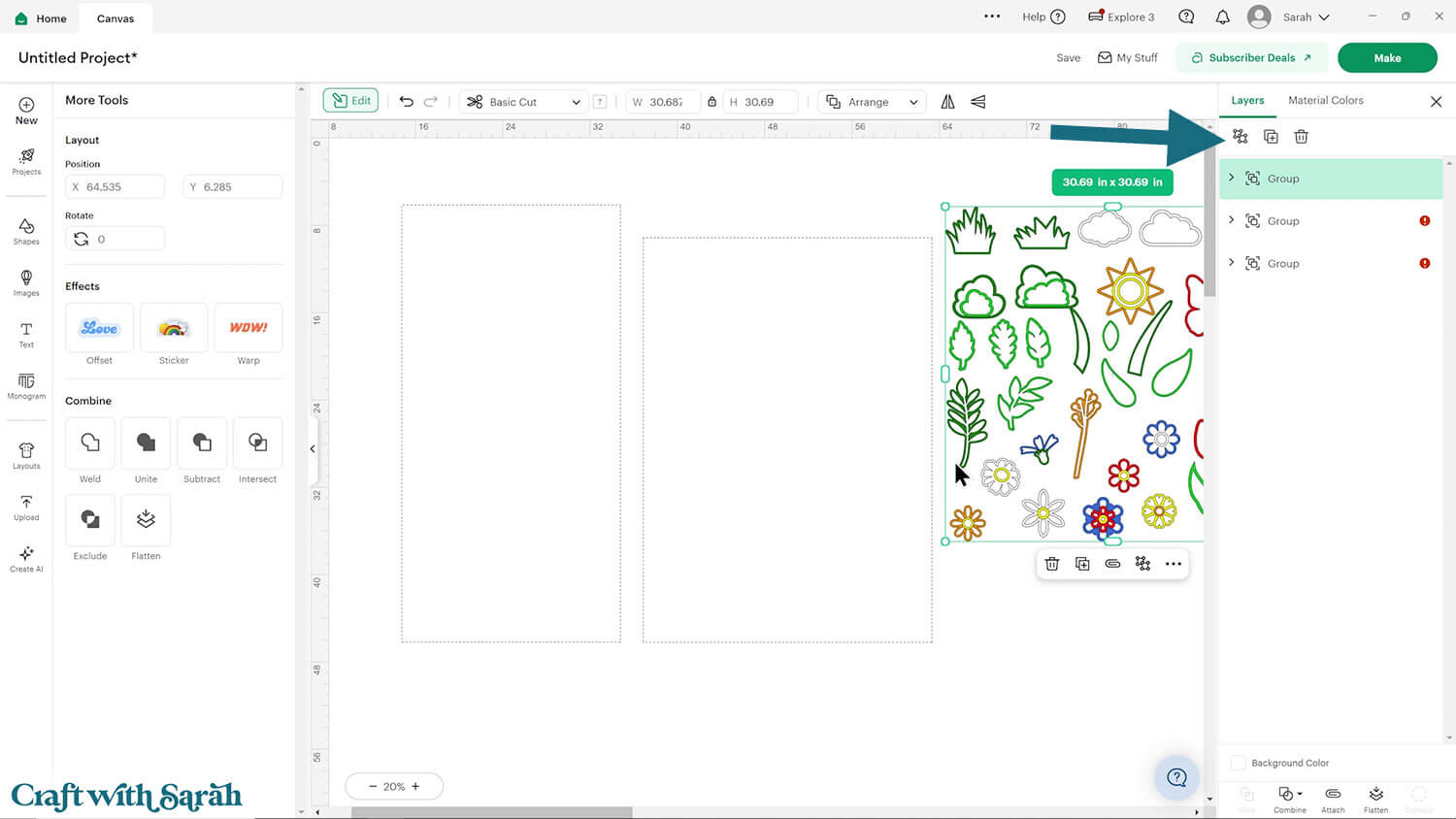 To save space on your cardstock, you can move things around by clicking and dragging. Make sure when you’re moving things about that nothing overlaps because otherwise, it won’t cut out properly.