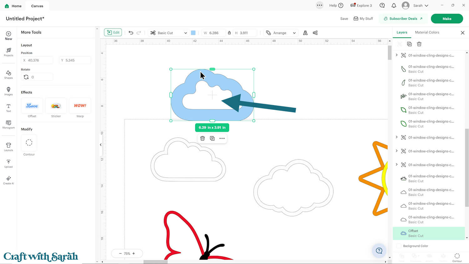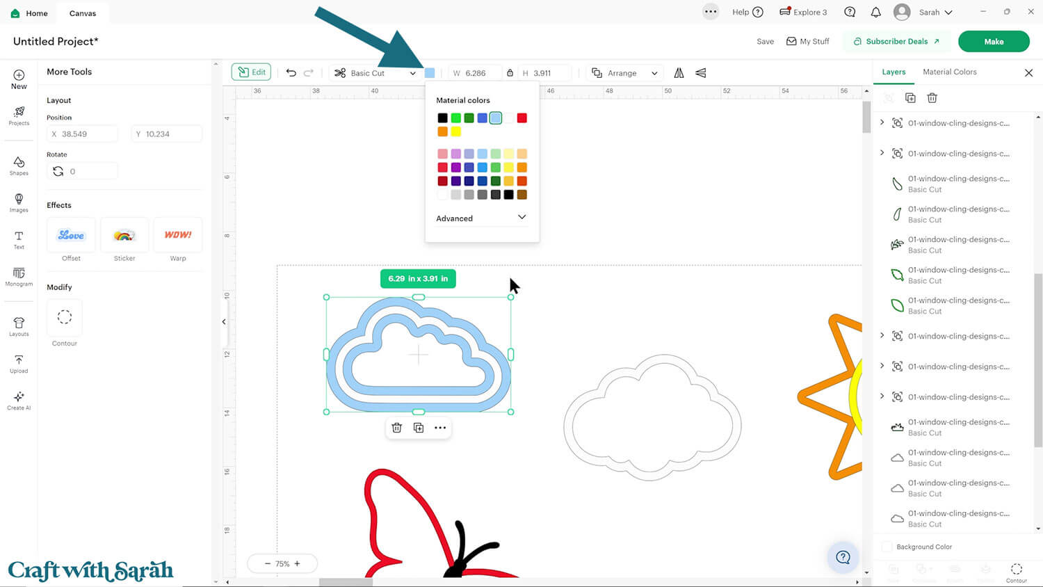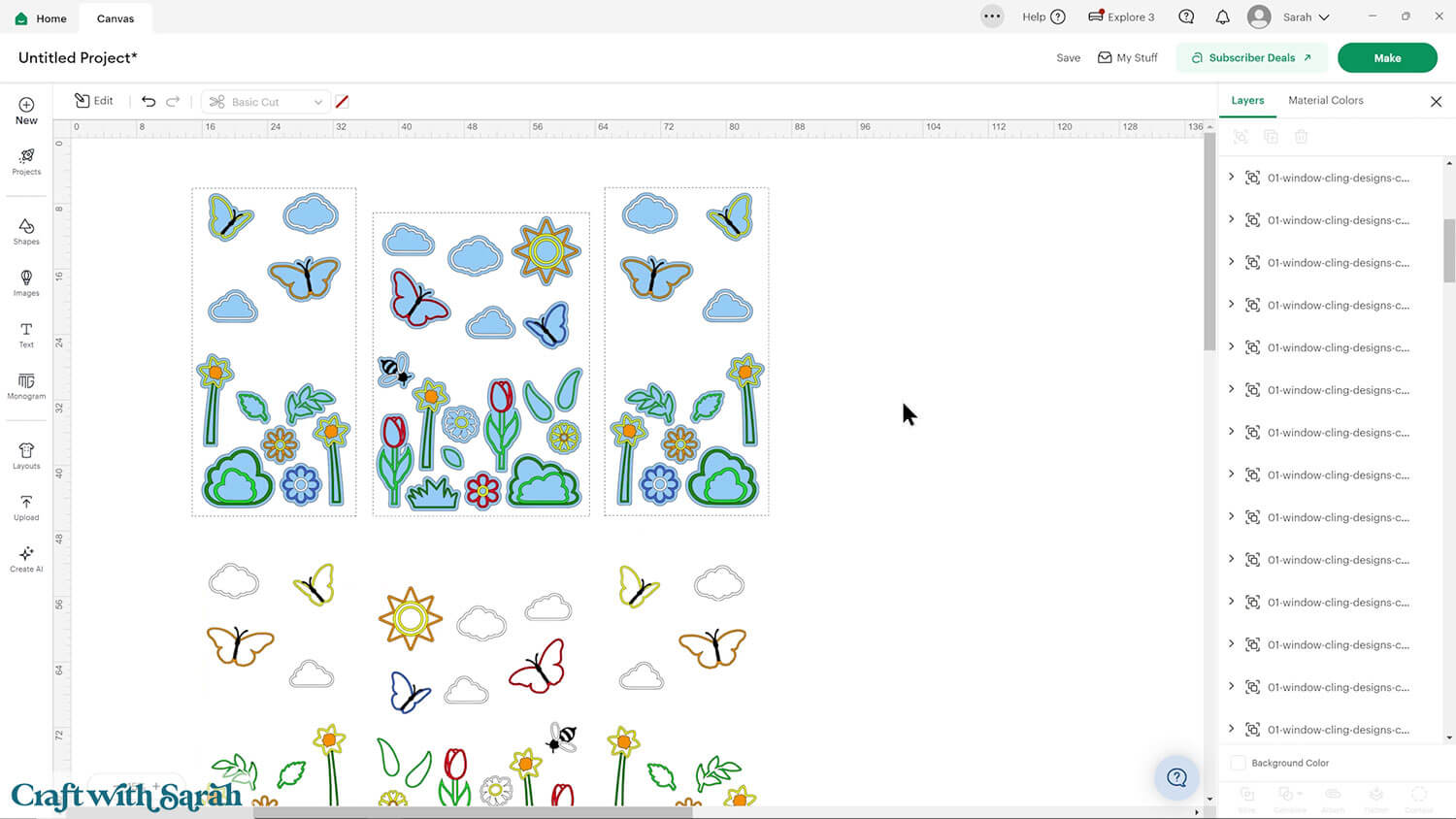 Click the window cling designs and move to the top of the layers panel with Arrange > Bring to Front.