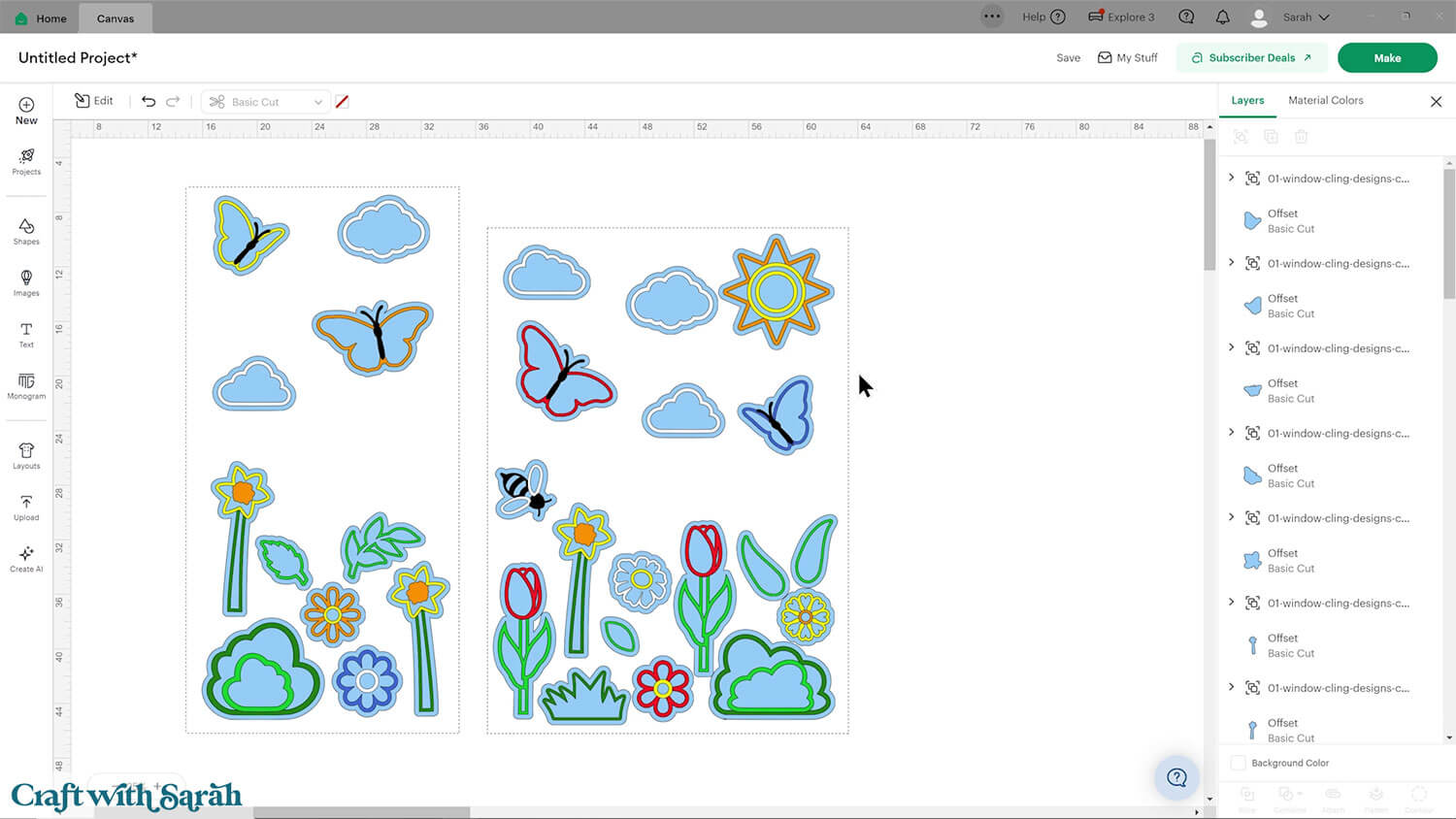 You’ll notice that the pictures don’t have the “outline” around the edges for the window cling. We’ll be adding that in Design Space using the “Offset” feature once our scene is complete.