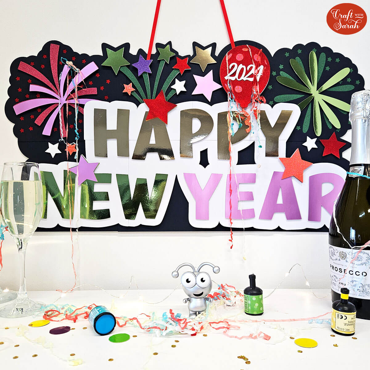 Make a Happy New Year giant sign to display for your New Year's celebrations.