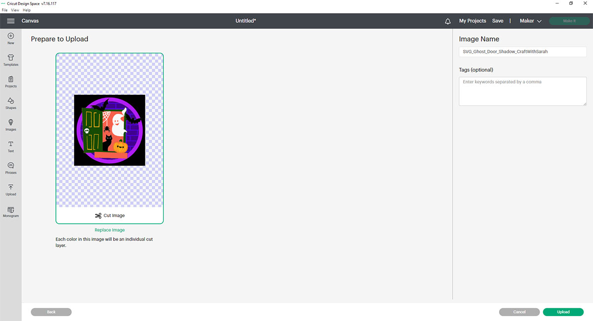 Go into the “Cut Files” subfolder and then select the file called SVG_Ghost_Door_Shadow_CraftWithSarah.svg