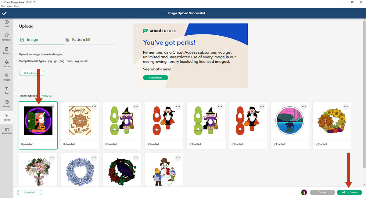 After uploading, the design will show in your “Recently Uploaded Images”.