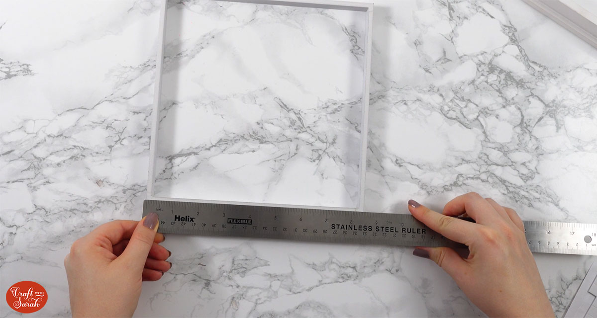 Make another square slightly smaller than the size you are cutting the layers of the shadow box out of (so mine is 7.5 inches square since my shadow box layers are 7.75).