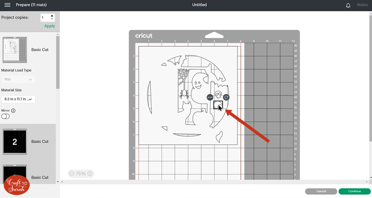 To save space on your cardstock, you can move things around by clicking and dragging. Make sure when you’re moving things about that nothing overlaps because otherwise, it won’t cut out properly.