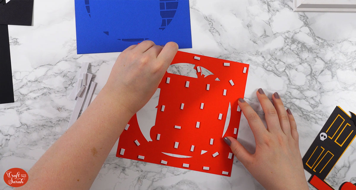 When adding the foam pads to the relevant layers, make sure you add some in the middle of the pieces of card so it give stability to the middles. If you don’t add any foam pads in the middles then it can “sag” under the weight of the other layers which doesn’t look as good.