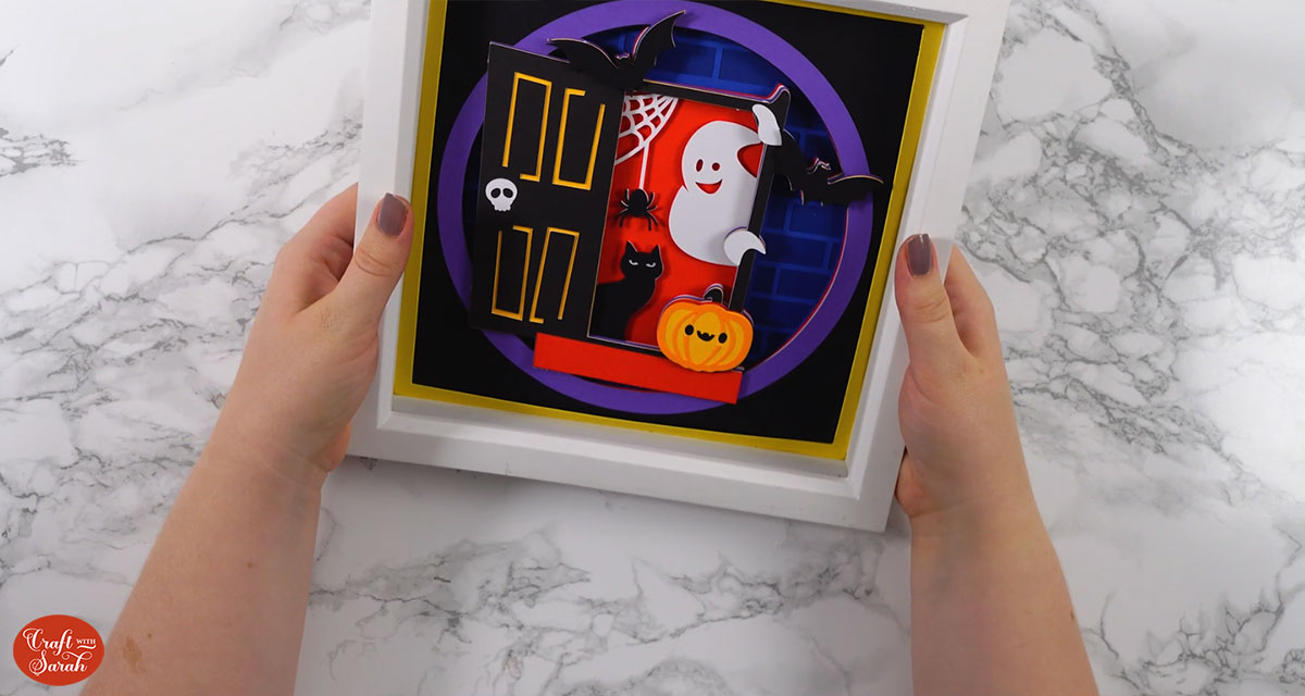 After sticking all the pieces of card together, you’ll have a wonderful layered Halloween shadow box all ready to be mounted on the wall.