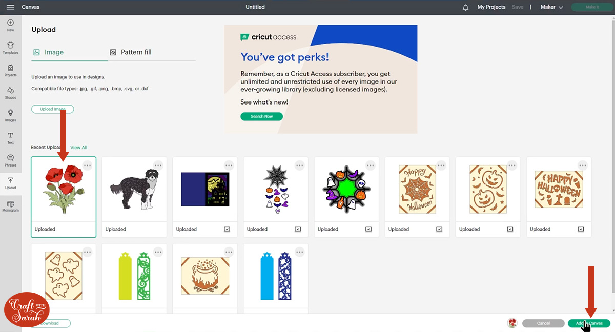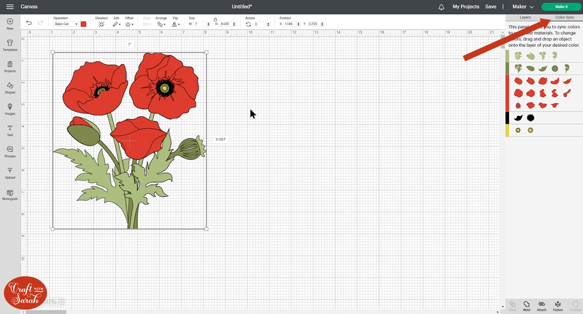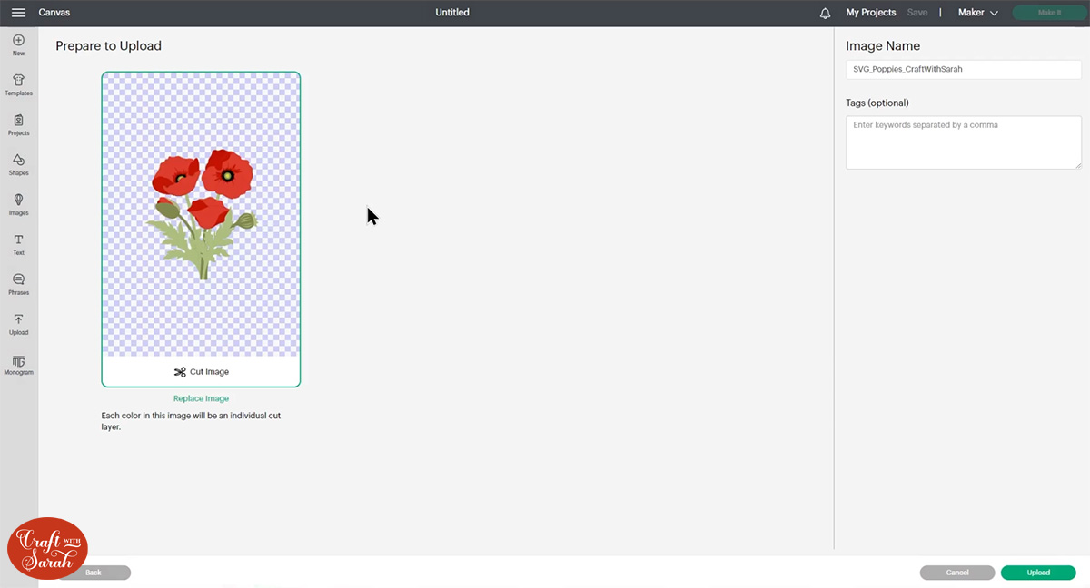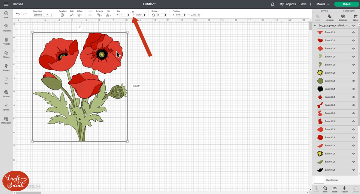 Open up Cricut Design Space and upload the file called SVG_Poppies_CraftWithSarah.svg