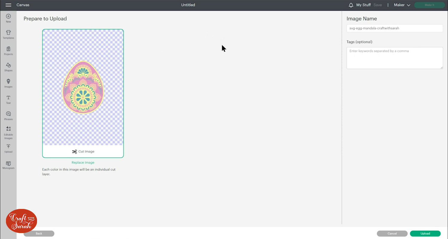 All the layers should appear “on top of each other” as per the image above. If you see all the layers next to each other instead, that means you’ve accidentally uploaded the wrong file type. If that’s the case, click “Cancel” on the bottom-right of the screen and try again.