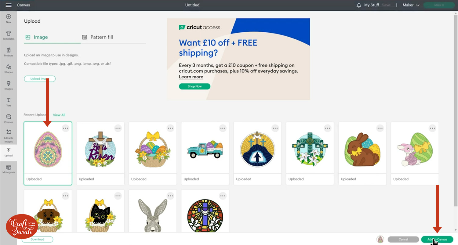 After uploading, the design will show in your “Recently Uploaded Images”.