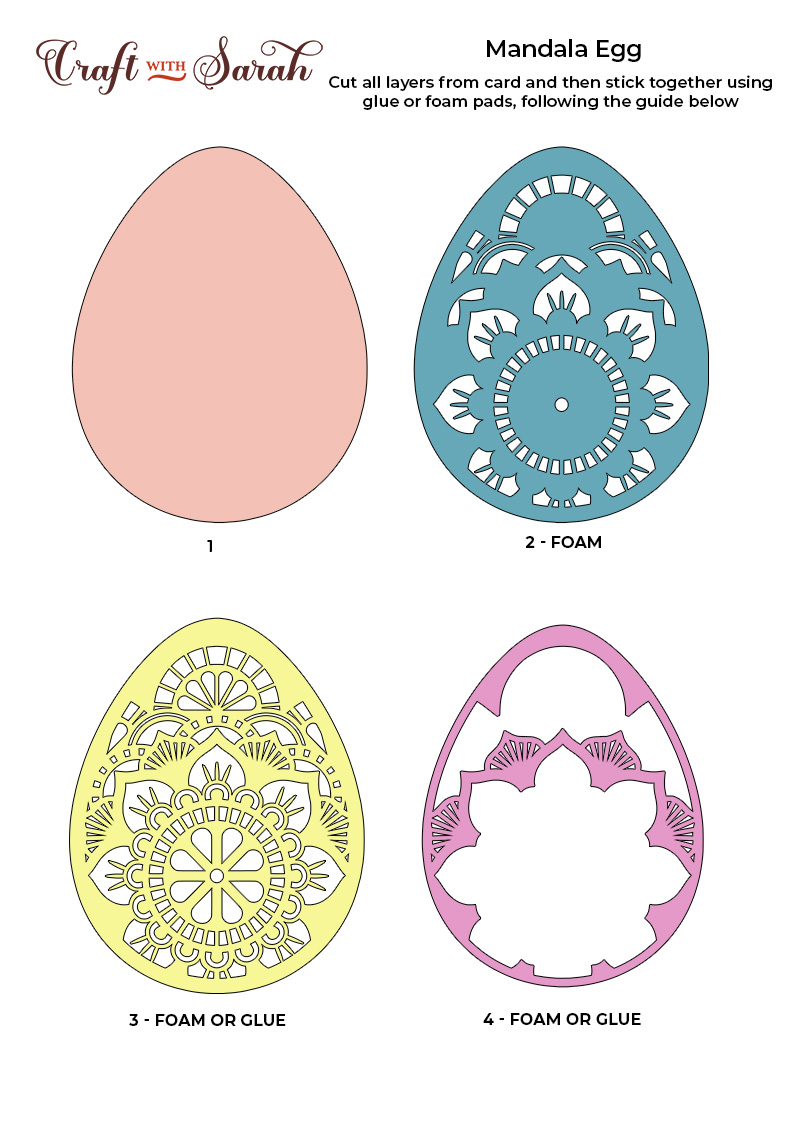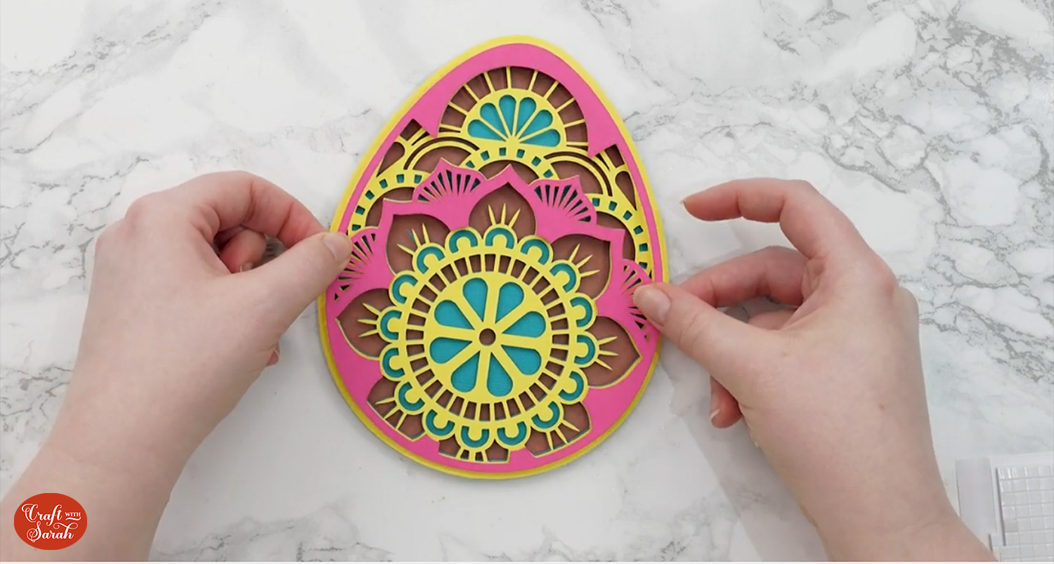 After sticking all the pieces of card together, you’ll have a wonderful layered Easter egg all ready to be framed.