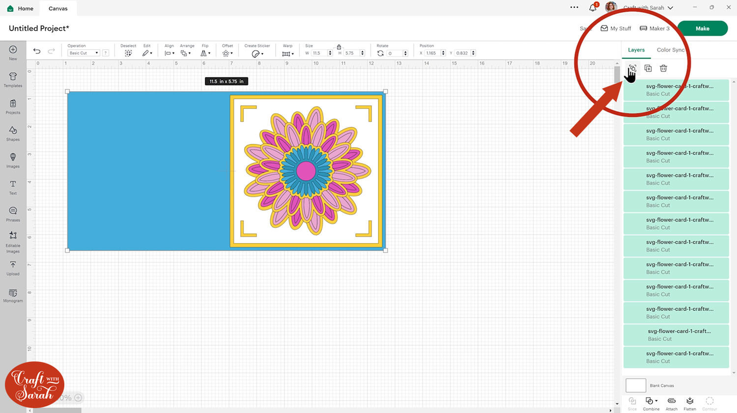 When you’re happy with how the project is looking in Design Space, click “Make” to begin the cut process.