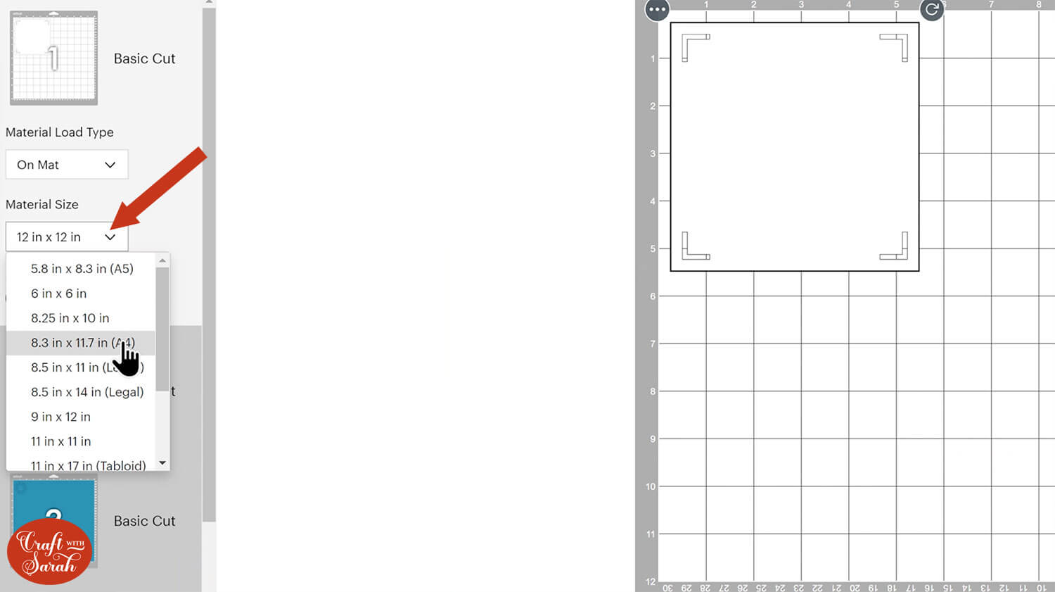 To change the paper size, go into the dropdowns over on the left side of the screen and choose the paper size that you want to use. You need to change it for every single colour.