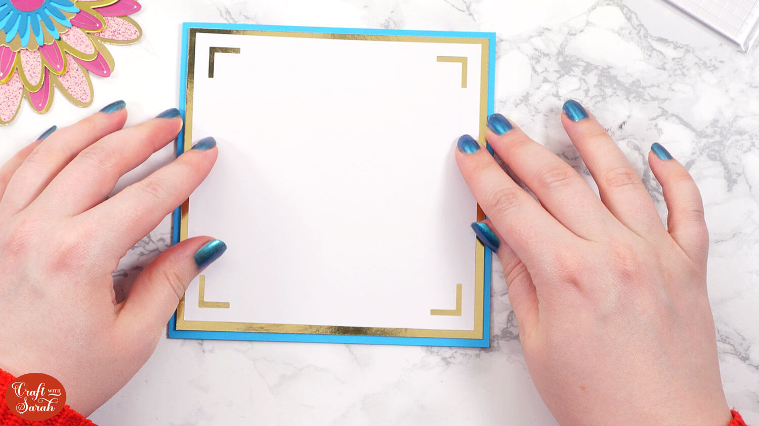 Glue the largest background layer of the card and glue it to the middle of the card.