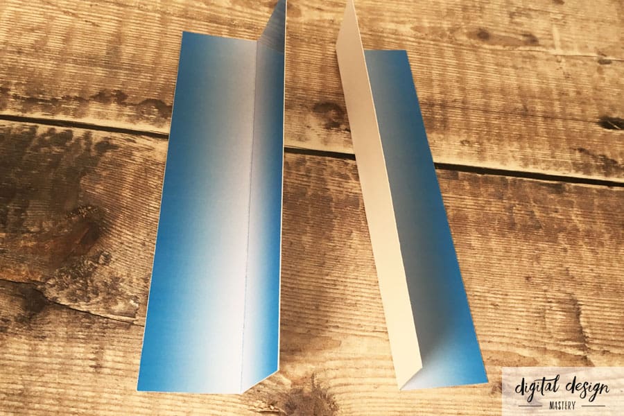 Use double sided tape to stick both of these SIDE PANELS to the outside of your card – one on each side.