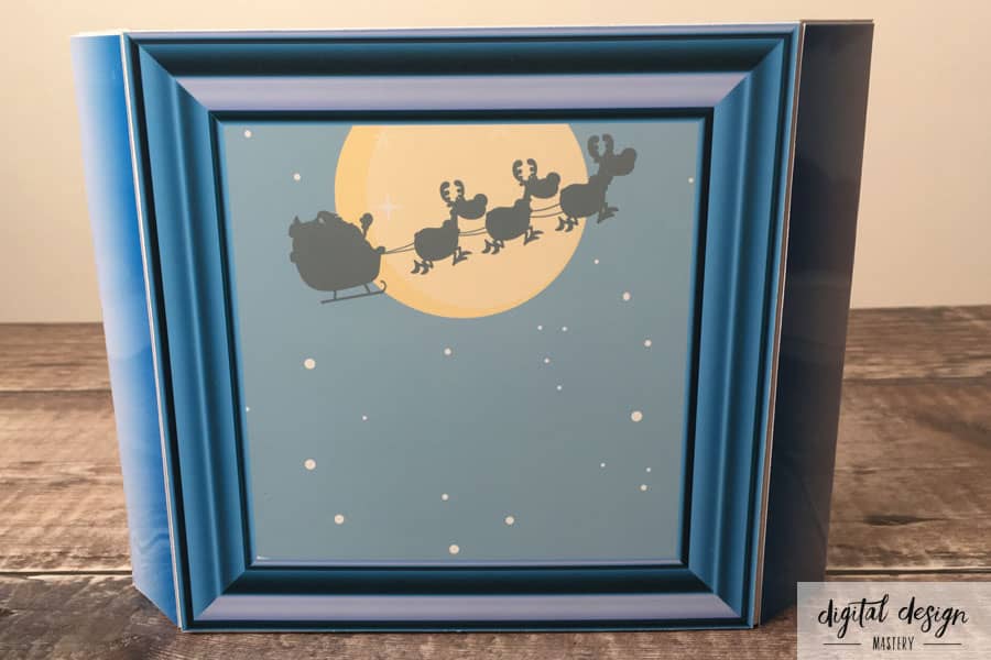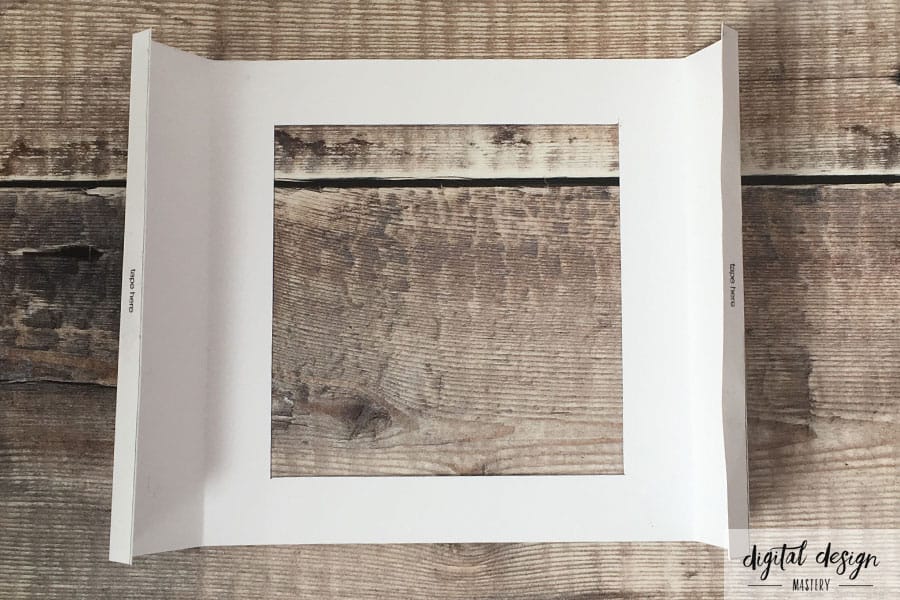 Mountain fold the two flaps so that they tuck in behind the square frame.