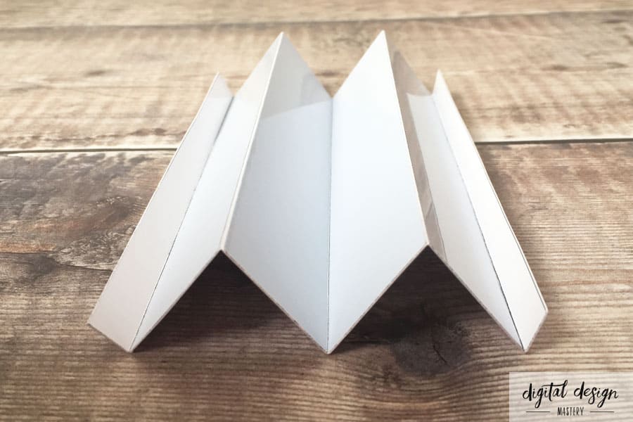 Stick double-sided tape along the back-side of the other white flap on the CONCERTINA piece and stick this to the back of the FRONT piece.