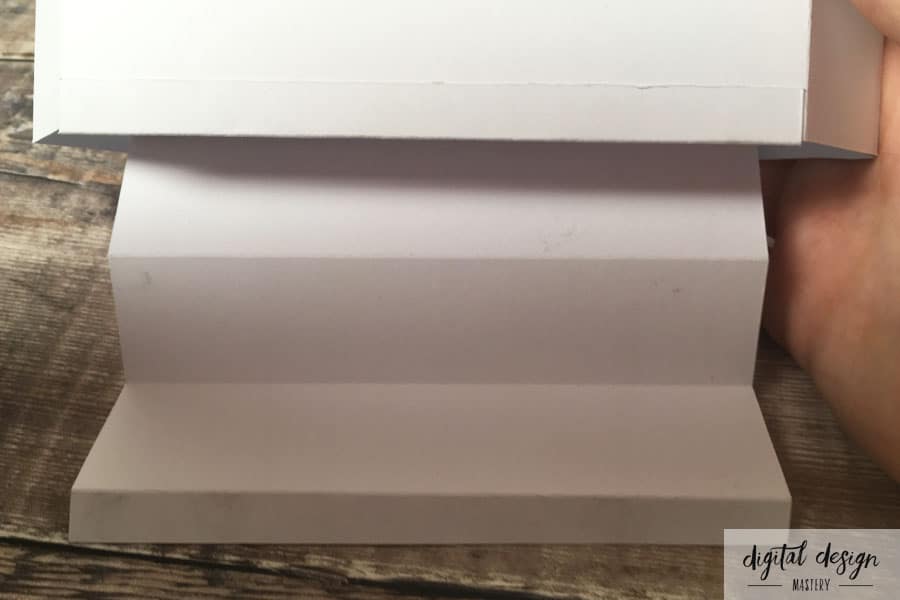 This is the most fiddly part of the card to make because you have to push the SIDE PANELS down past the CONCERTINA piece so that they full cover the visible white paper of the inside sides of the card.