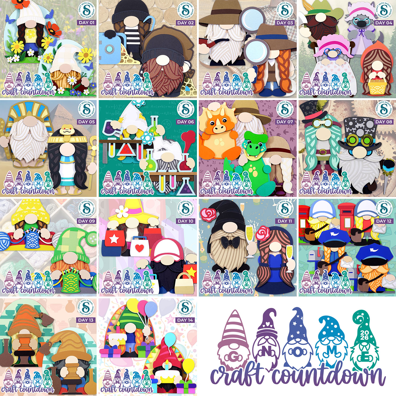 The 2026 Gnome Craft Countdown ran from 7th – 20th February and featured a new pair of layered gnome SVGs each day.