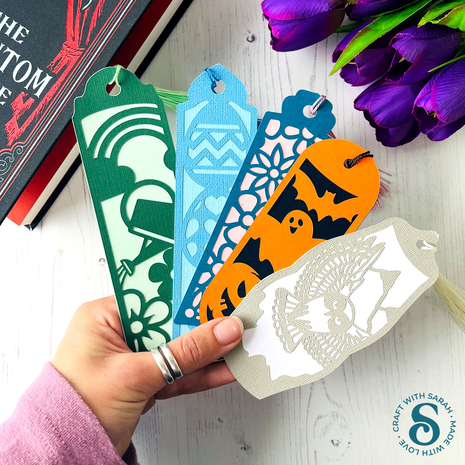 The Class teaches how to build up your bookmark designs using different images/SVGs, then how to cut all the images into the correct shape so that no parts go outside the edge of the bookmark sides. Then, I’ll show you how to turn them from simple two-layer bookmarks into multi-coloured designs.