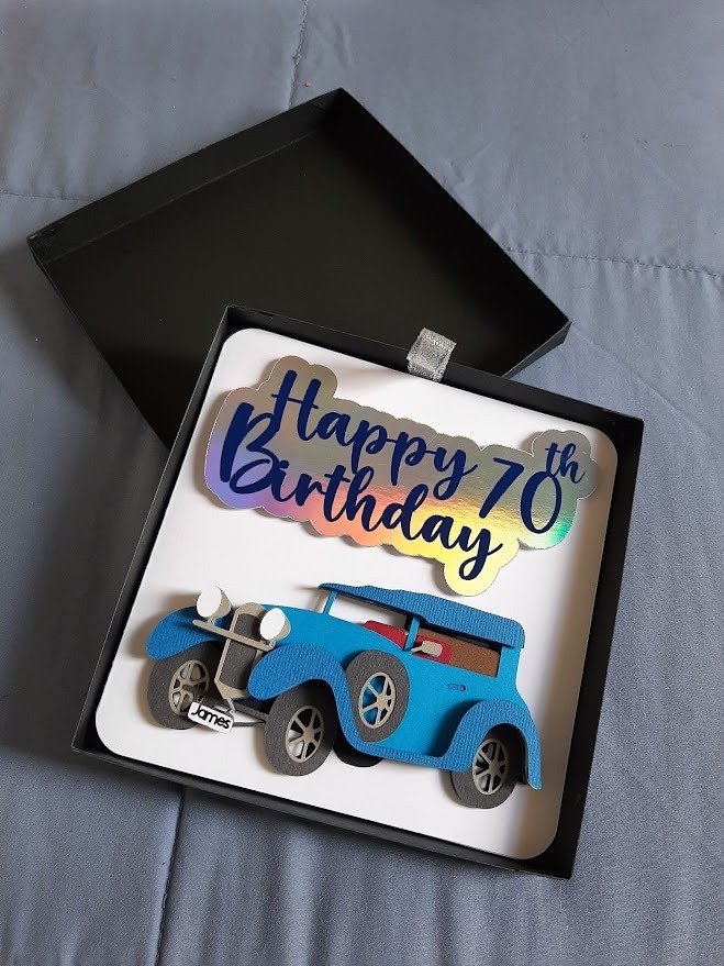CLASSIC CAR WITH PERSONALIZED NUMBERPLATE FOR THE BIRTHDAY BAY