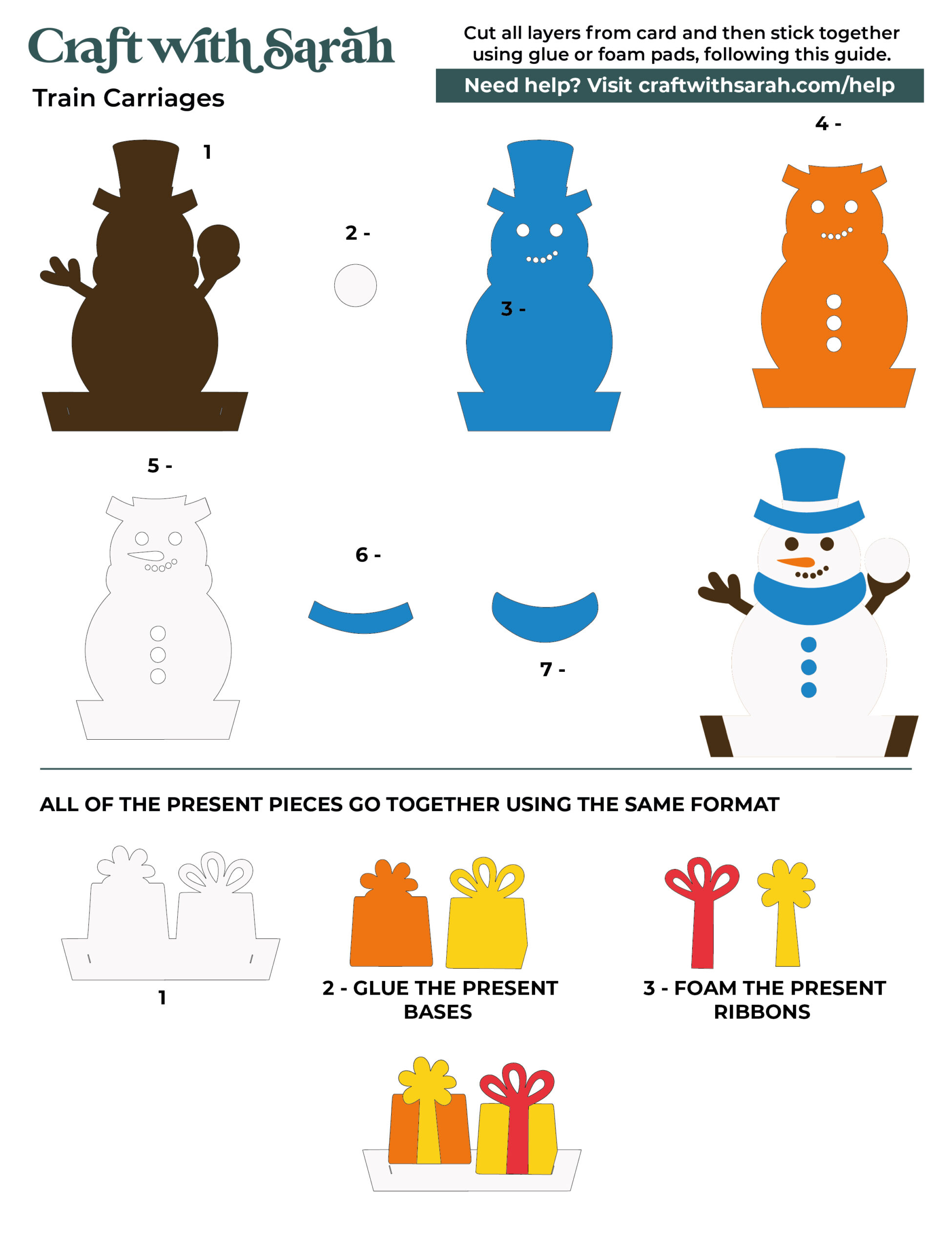 - Coloured Card (ideally 215gsm / 80lb or higher for the train structure pieces)
