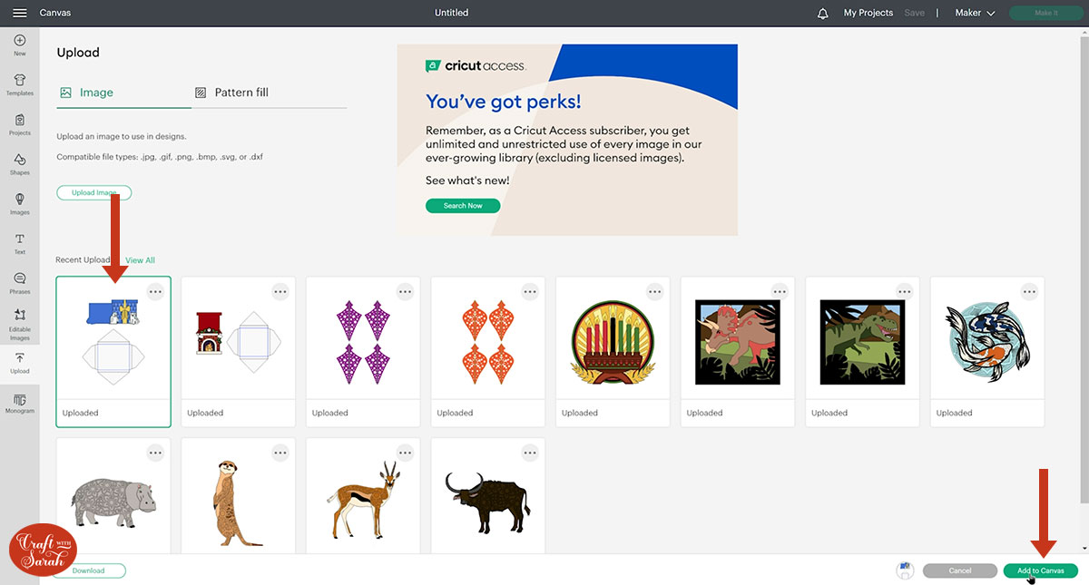 Step 2) Upload the SVG file into Design Space
