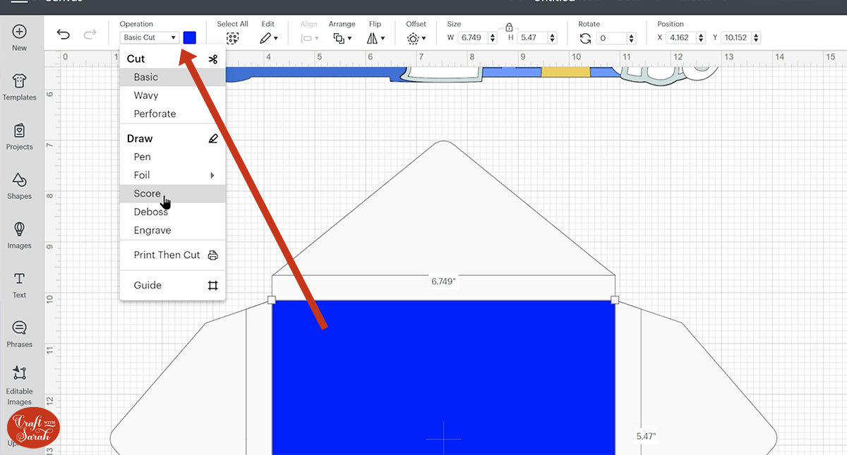 Make it the same height as the base card. Select both layers and click “Align” and “Center” to put the score line in the middle of the card.